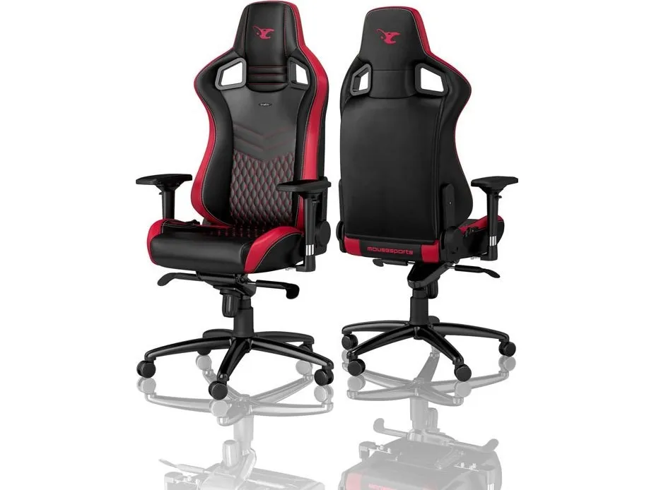 noblechairs EPIC mousesports Edition, pehmustettu istuin, Pehmustettu selkänoja, Musta, Punainen, Musta, Punainen, Nahka, Polyuretaani, Nahka, Polyuretaani (PU)