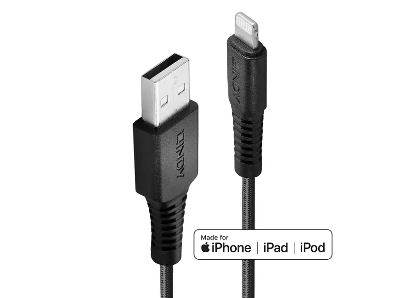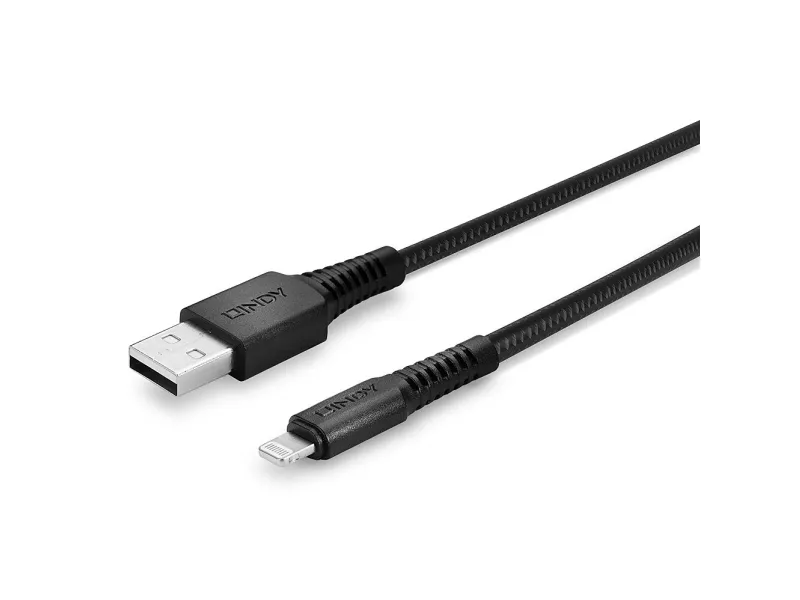 This range of USB 2.0 Type A to Lightning cables provide a reliable and effective charging solution for iPhones, iPads and other Apple devices, utilizing not only a reinforced shielding and jacket structure but also an optimum strain relief, tested to bend over 100,000 times before failure. A revolutionary resistant yet flexible solution to preventing splitting and snapping.