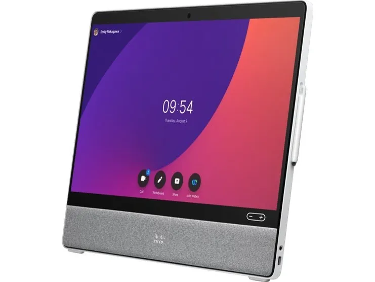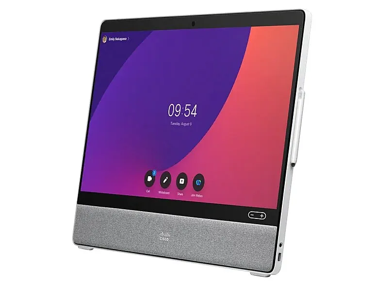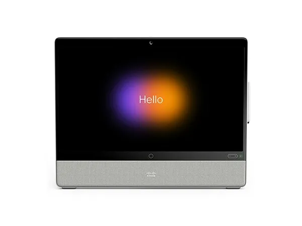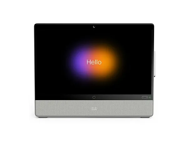 Cisco Webex Desk Pro on ensiluokkainen yhteistyö- ja tuottavuuslaite, jossa on 27-tuumainen 4K-näyttö, 71 asteen HD-kamera, ylivoimainen äänijärjestelmä ja kehittynyt melua vaimentava mikrofoniryhmä.