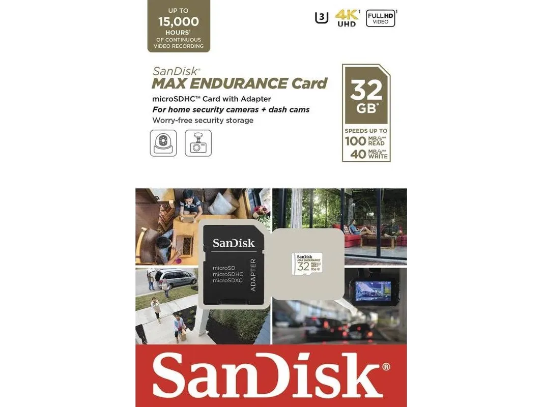 The SanDisk Max Endurance microSD card is engineered not only for continuous recording and re-recording, but also for continuous peace of mind for years to come. Designed to last, this microSD card can withstand a variety of extreme weather conditions because it's temperature-proof, waterproof, shockproof, and X-ray proof. With large storage capacities, you can record and store more Full HD or 4K videos. And, with high read speeds, you'll be able to spend less time transferring and backing up video footage, and more time living life.