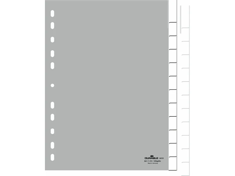 Durable 6410-10, Tyhjä välilehtihakemisto, Polypropeeni (PP), Harmaa, Muotokuva, A4, 230 mm