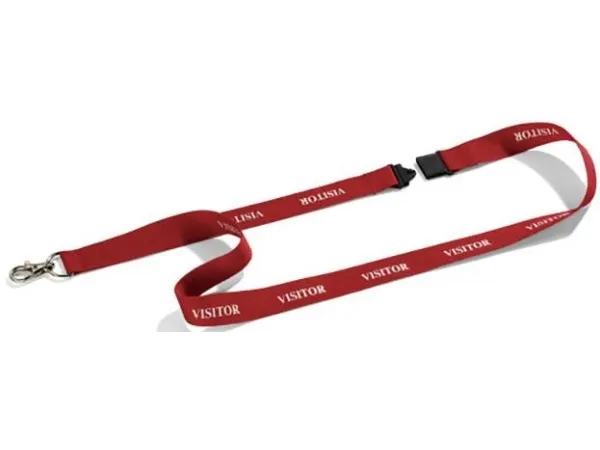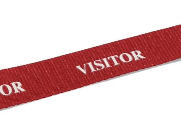 Tekstiilinen kaulanauha valkoisella painatuksella VISITOR