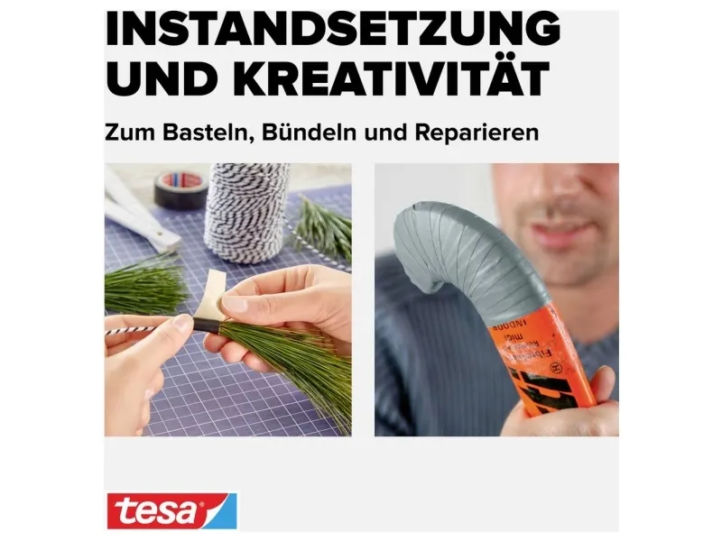 tesa extra Power Perfect marks the premium class among the repairing tapes from tesa. This versatile tape is a high quality cloth reinforced tape that suits a wide range of indoor and outdoor applications. This cloth tape can be torn easily by hand, yet is highly tear-resistant and stands out for its weather resistance and long-term durability. The cloth tape is not only available in a wide range of colours. It can also be written on, which makes it an universal tape perfectly suited for crafting, marking, repairing and bookbinding.