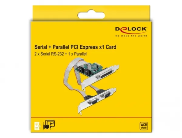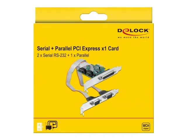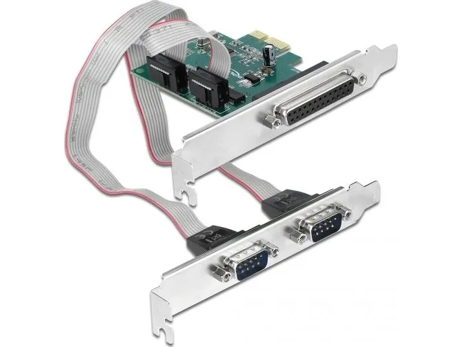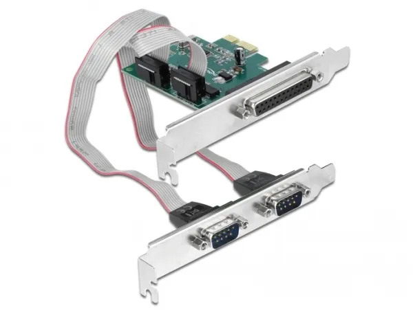 The PCI Express card by Delock expands a PC by two external serial ports as well as one external parallel port. Different devices such as scanner, printer, mouse etc. can be connected to this card.