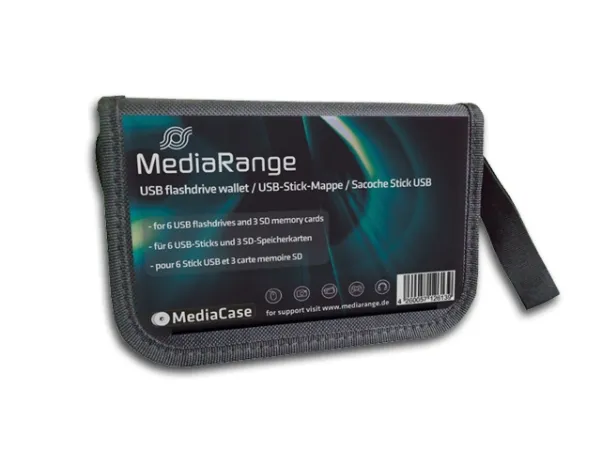 MediaRange Flashdrive lompakko - Bæretaske for drev til lagring - kapasiteetti: 6 USB flash-enheder, 3 SD hukommelseskorttia