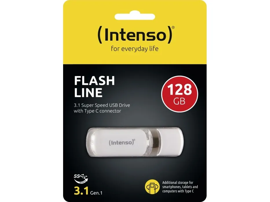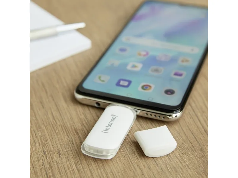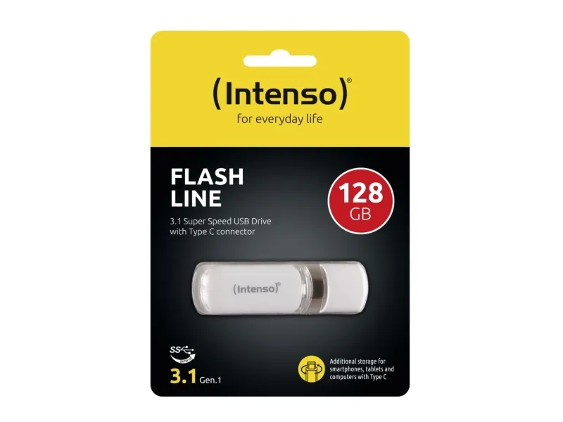 The Flash line was developed for smartphones, computers and tablets with USB Type-C connection. Thanks to the USB 3.1 Gen.1 Type-C interface, fast transfer rates can be achieved. Thus photos, videos, music and other files can be transferred in seconds. The Intenso USB stick with OTG function can be used without an app. Simply connect it to your compatible smartphone and you can directly store photos, music and other files on the stick. Thanks to the OTG function, you can easily back up and manage your data at any time, even on the road.