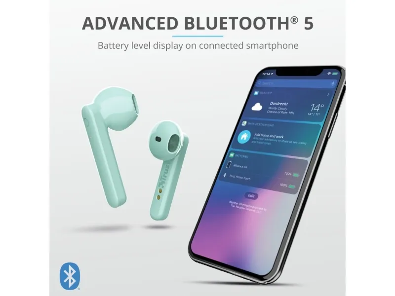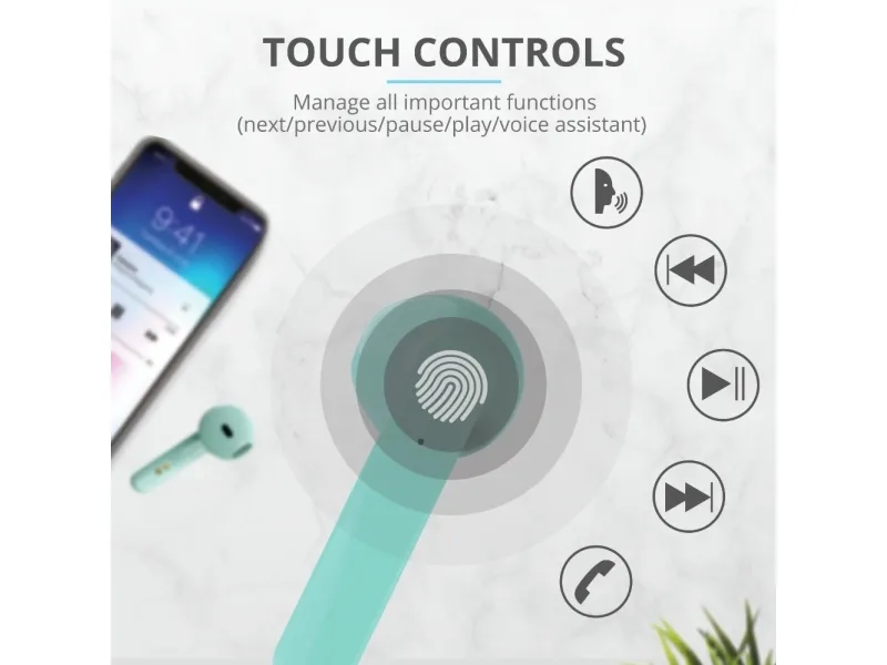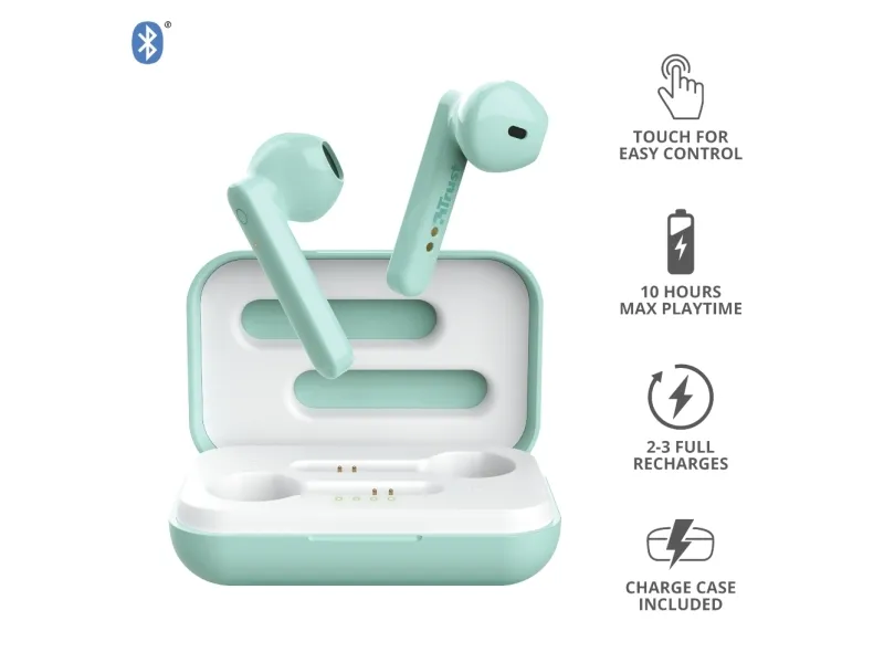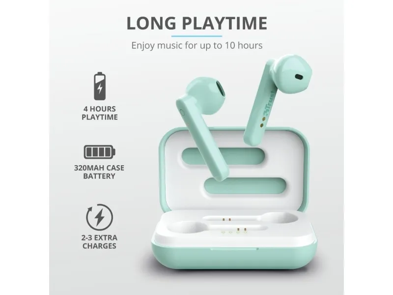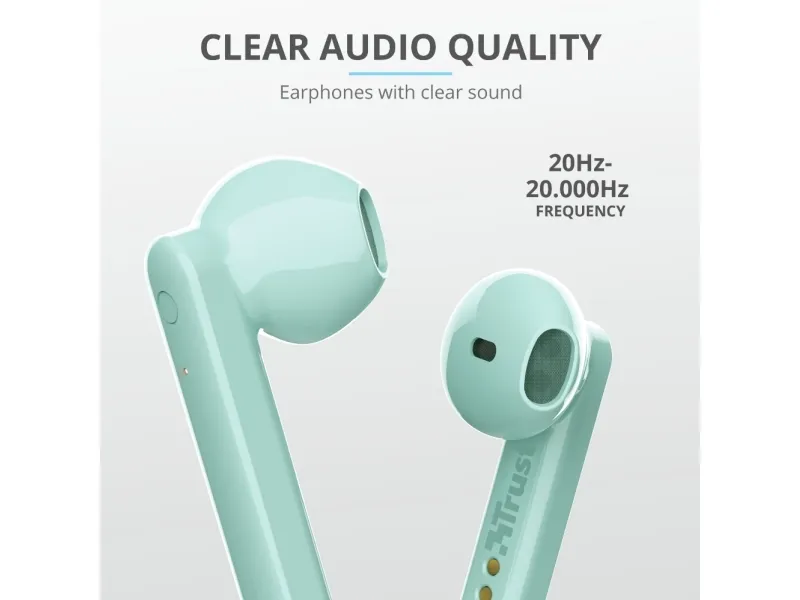 Trust Primo, True Wireless Stereo (TWS), Puhelut/Musiikki, 20 - 20000 Hz, 55 g, Kuulokkeet, Mintunvärinen