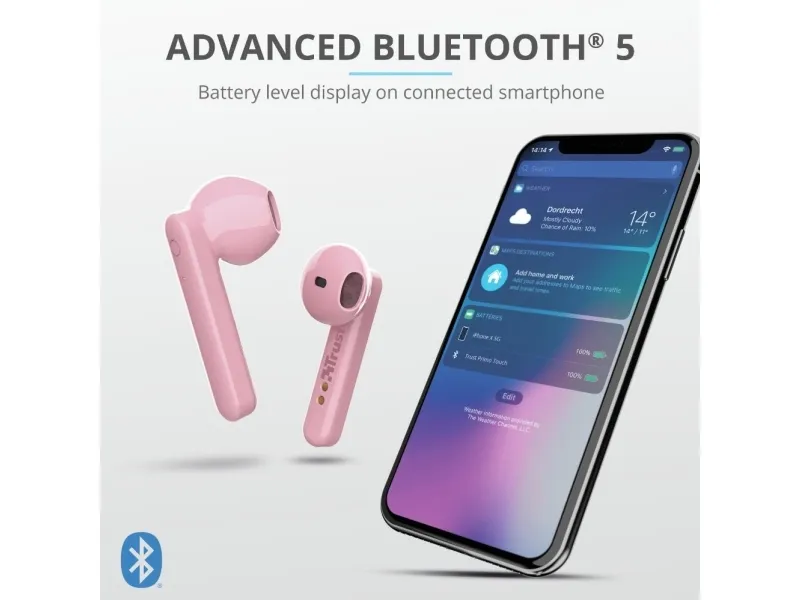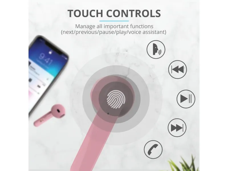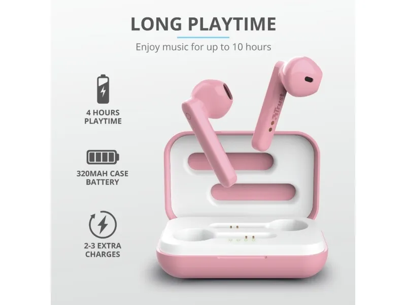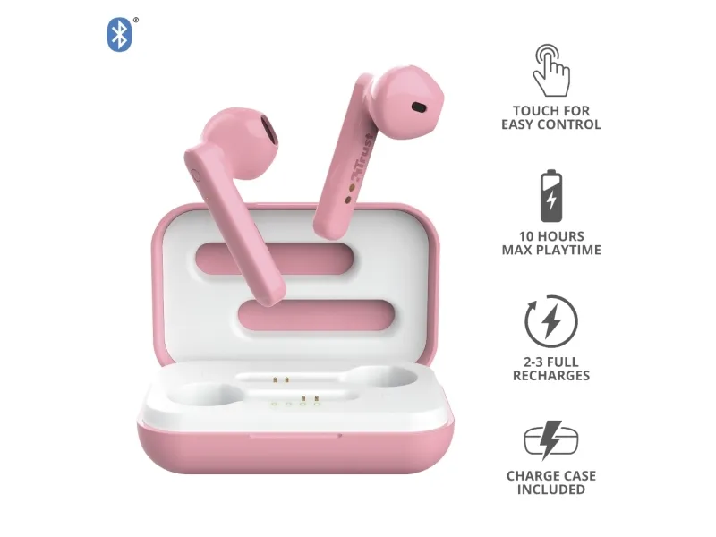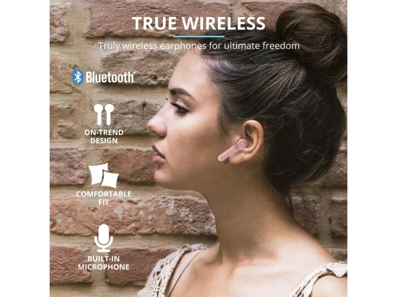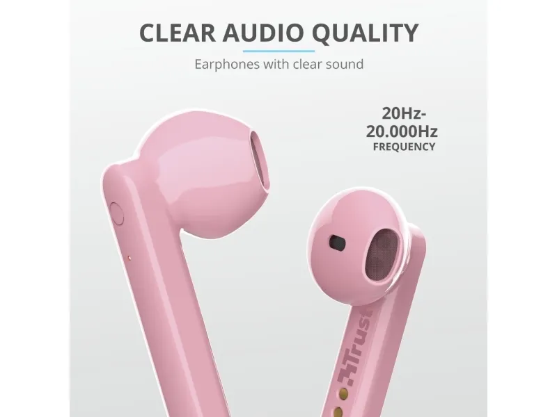 Trust Primo, True Wireless Stereo (TWS), Puhelut/Musiikki, 20 - 20000 Hz, 55 g, Kuulokkeet, Vaaleanpunainen