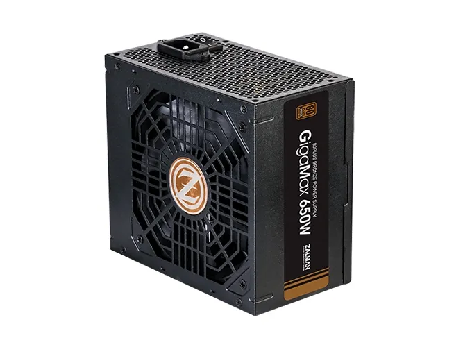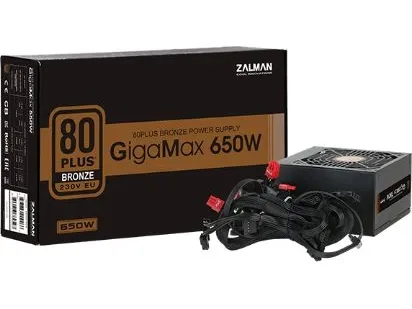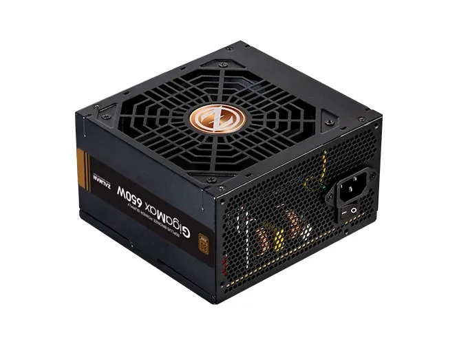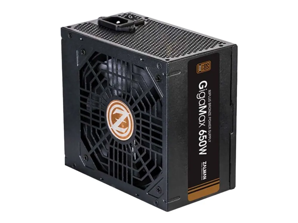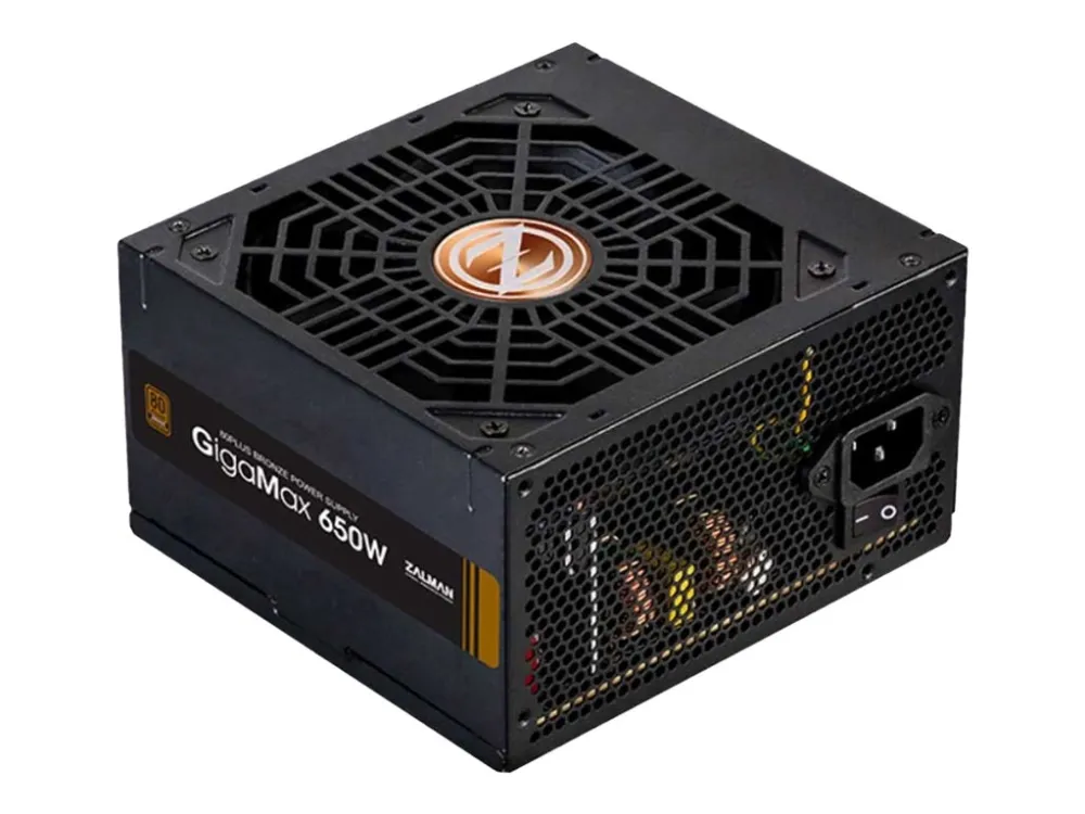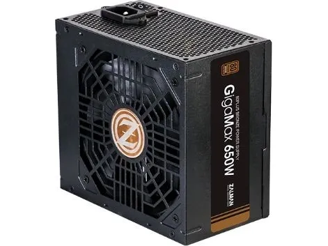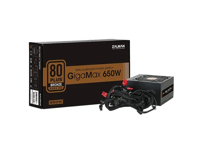 The ZALMAN GigaMax ZM650-GVII power supply is designed to deliver reliable performance with a maximum output of 650 watts. This internal power supply complies with ATX12V 2.31 standards and provides stable voltages of +3.3V, +5V, ±12V. With an efficiency rating of 88% at 230VAC and an 80 PLUS Bronze certification, it helps reduce energy costs while ensuring optimal power delivery for your system. The advanced cooling system features a 120 mm fan with fluid dynamic bearing technology to enhance airflow and minimize noise levels.Built for durability and safety, the ZM650-GVII includes multiple protection features such as overcurrent, overvoltage, overpower, undervoltage, short-circuit, and thermal protection. Additionally, it is equipped with active Power Factor Correction (PFC) to enhance efficiency and provide stable power. The non-modular design simplifies setup and ensures reliable connectivity with various power connectors for components, including motherboards and graphic cards. This power supply is SLI and CrossFire ready, suitable for high-performance builds.
