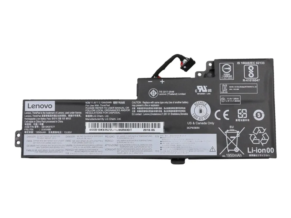 The Lenovo LG Chem notebook battery is designed for reliable performance, providing essential power for your device. With lithium-ion technology and a capacity of 2100 mAh, this battery ensures your device operates efficiently. The 3-cell configuration delivers consistent voltage at 11.4 V, making it a dependable choice for powering everyday computing tasks. This battery complies with UN38.3 standards, ensuring safety and reliability throughout its use.