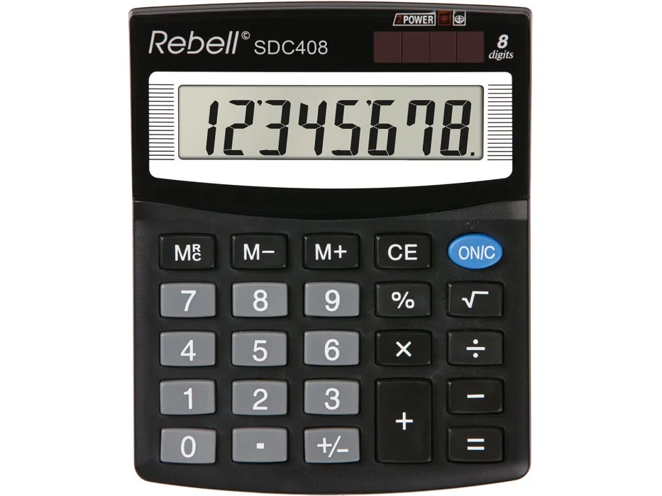 Rebell SDC 408. Form factor: Desktop, Type: Basic. Digits: 8 digits, Display number of lines: 1 lines. Power source: Battery/Solar. Product colour: Black