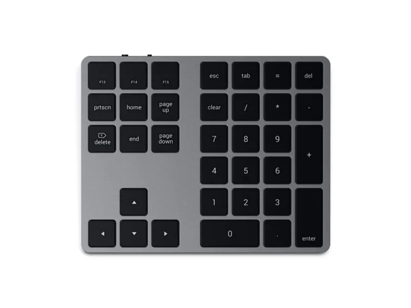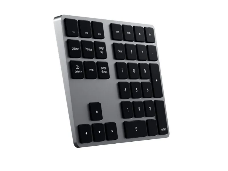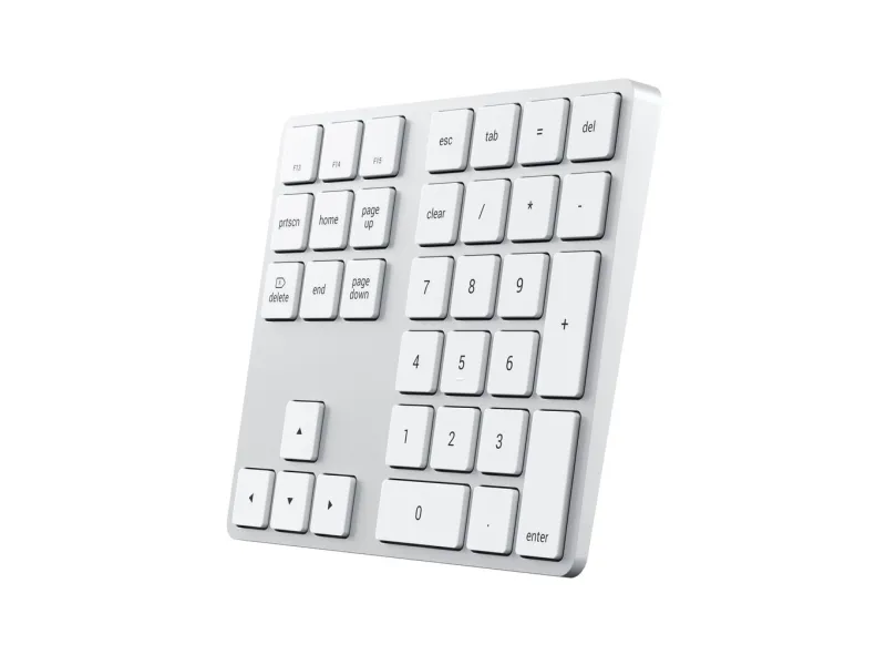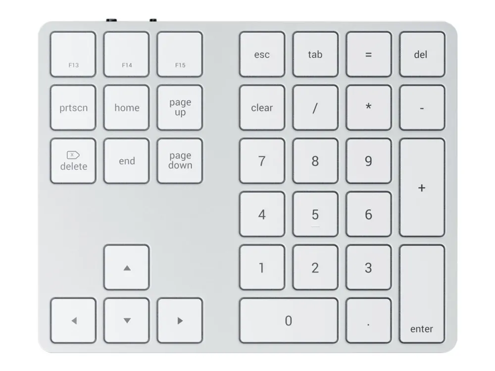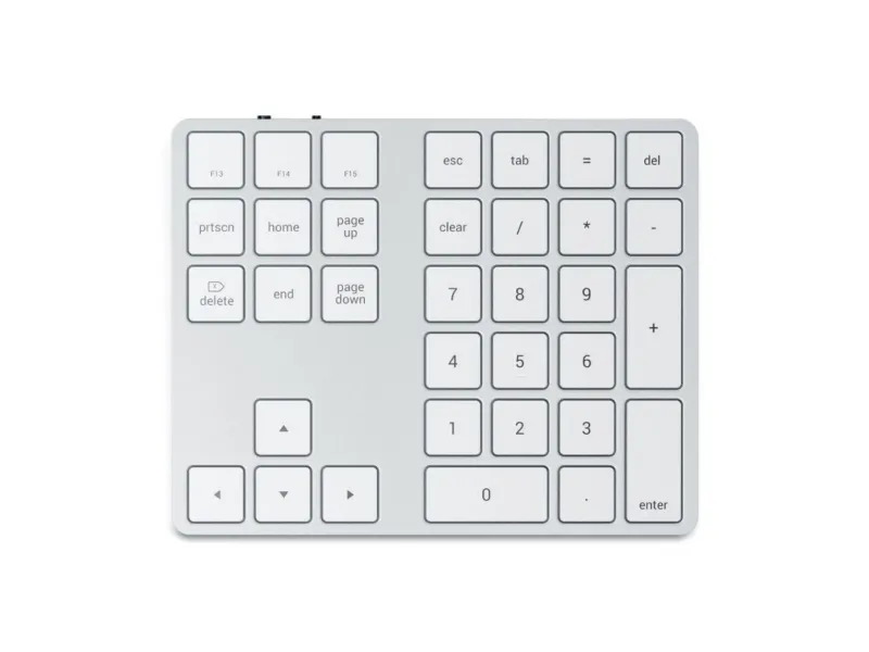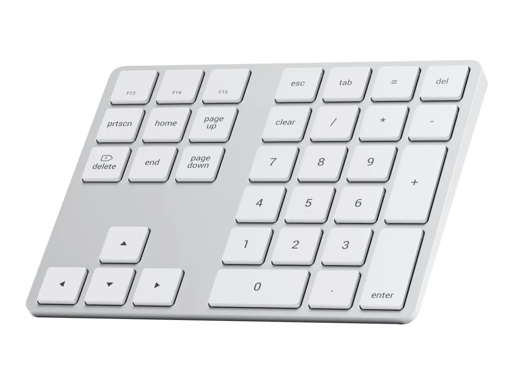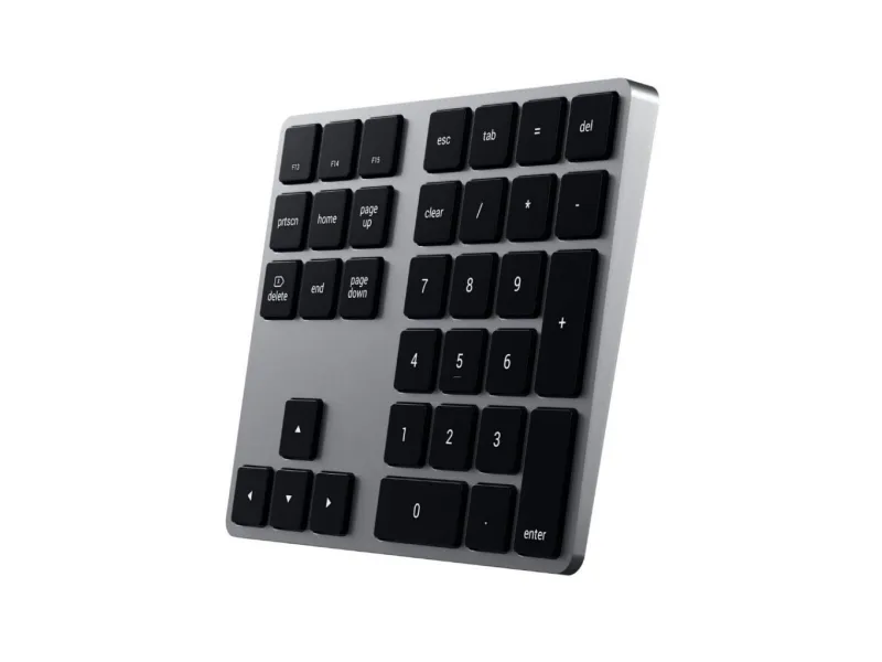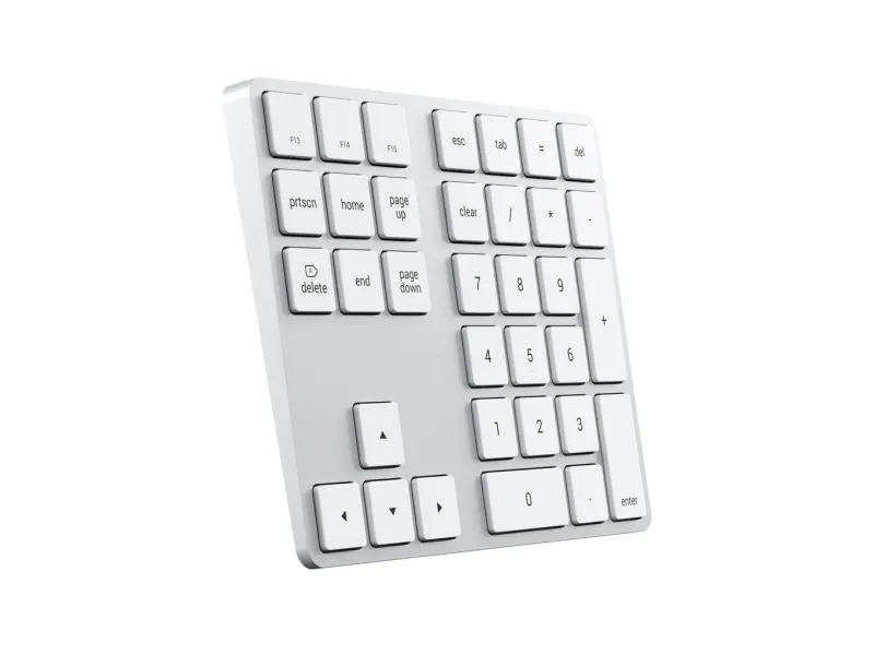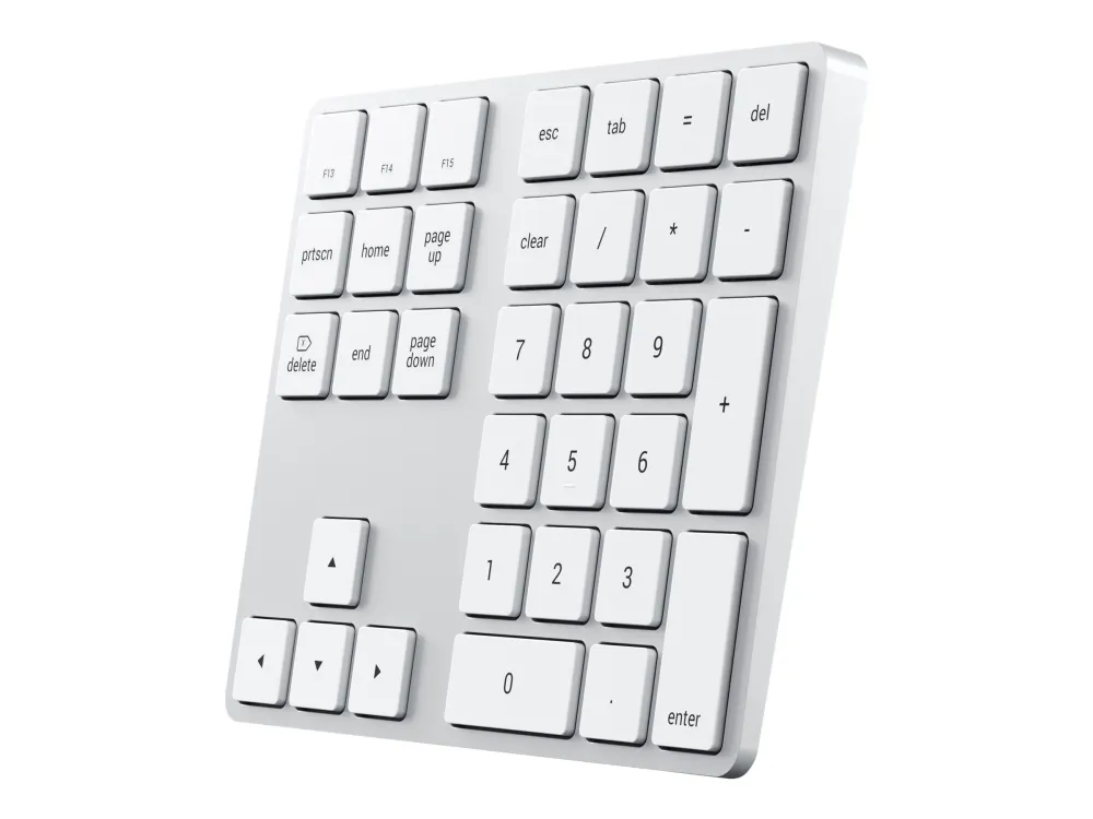 Laajenna näppäimistöäsi Satechi Bluetooth Extended Keypadilla. Bluetooth Extended Keypad -näppäimistö sisältää täydellisen numeronäppäimistön, navigointinuolet ja kätevät MacOS-pikanäppäimet, ja se palauttaa pöytätietokoneen näppäimistön toiminnallisuuden tablettiisi tai kannettavaan tietokoneeseesi. Ohut ja tyylikäs muotoilu täydentää modernia asetustasi ja tekee tietojen syöttämisestä helppoa - olitpa sitten toimistossa tai liikkeellä.