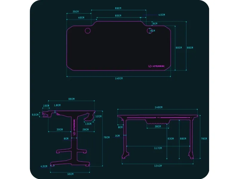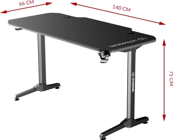 Ultradesk FRAG, Suora, Suorakaiteen muotoinen, Pelaaminen, Kotitoimisto, Musta, Musta, Musta