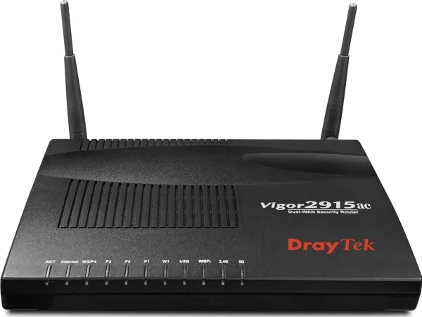 The Vigor 2915 series is an integrated network management solution designed for a small business. The primary WAN interface is a Gigabit Ethernet, and users can add a secondary WAN connection using port number 4, the USB port, or the Wi-Fi interface. The dual-WAN provides load balancing or link redundancy to ensure a reliable Internet access. Vigor 2915 series is also a robust VPN server for up to 16 concurrent tunnels.