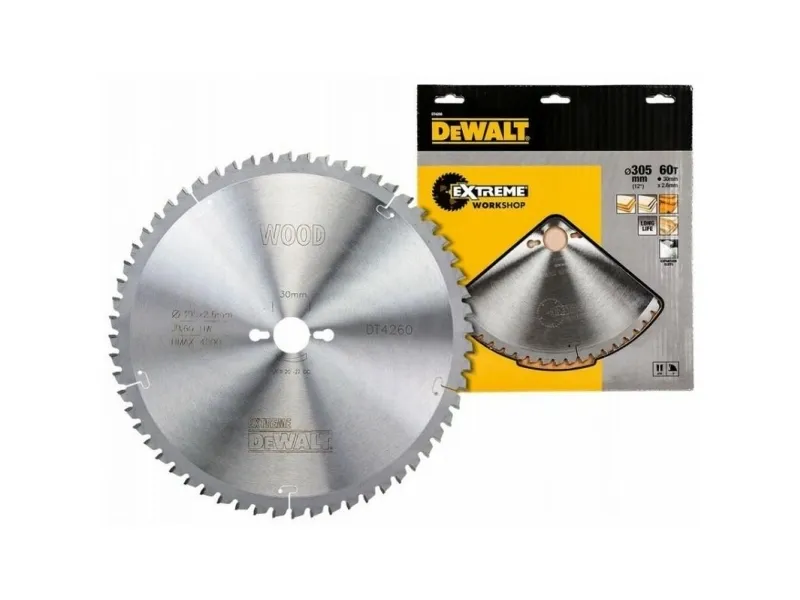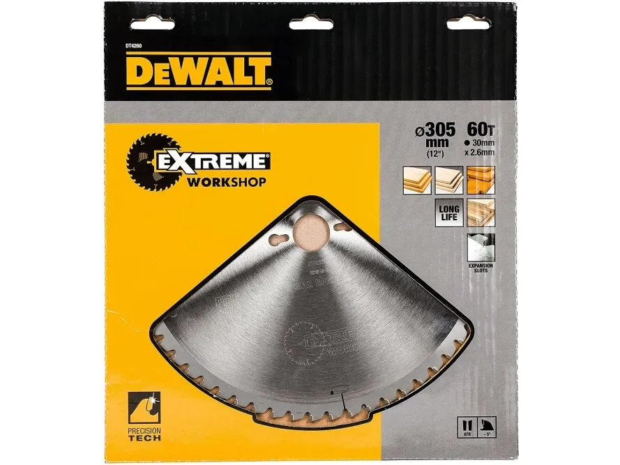 Extreme Workshop saw blade are ideal for the dedicated craftsman. These saw blades possess a number of features designed to give a superior finish to cuts in many different types of natural and man made wood.DeWALT DT4260-QZ. Brand compatibility: DeWALT. Package weight: 1 kg. Quantity per pack: 1 pc(s)