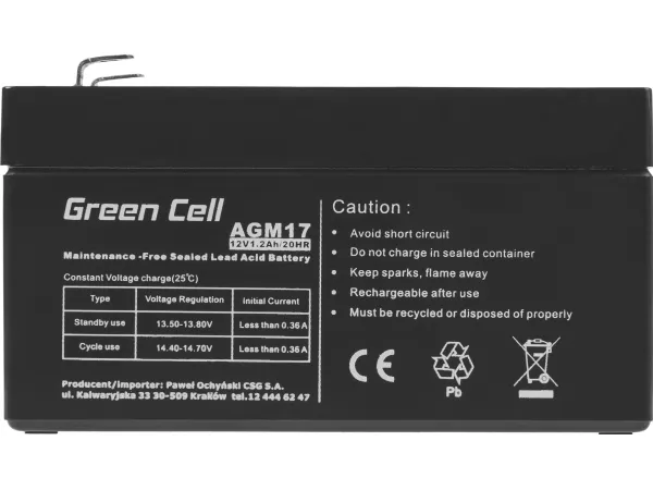 Green Cell AGM17, Sealed Lead Acid (VRLA), 12 V, 1 kpl, Musta, 1,2 ah, 5 vuosi/vuosia