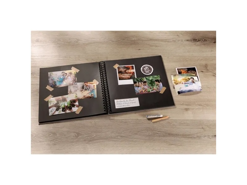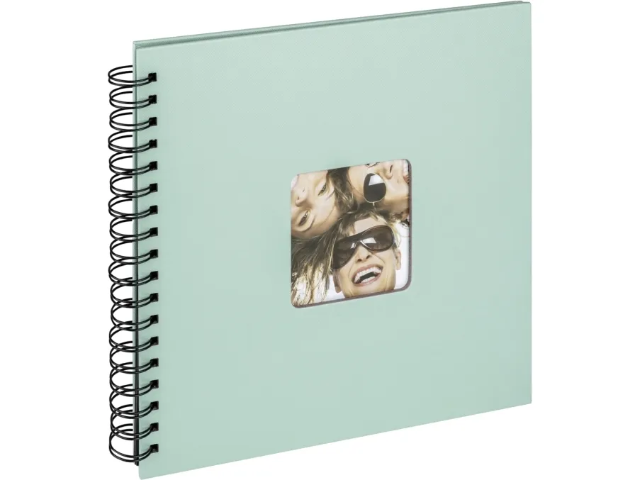 Wire-o bound album with high quality cover. It is ennobled with a square die cut for your personal photo. The album in size 26 x 25cm (10,2 x 9,8 inch) with 40 black acid-free pages is available in various colours and articles.