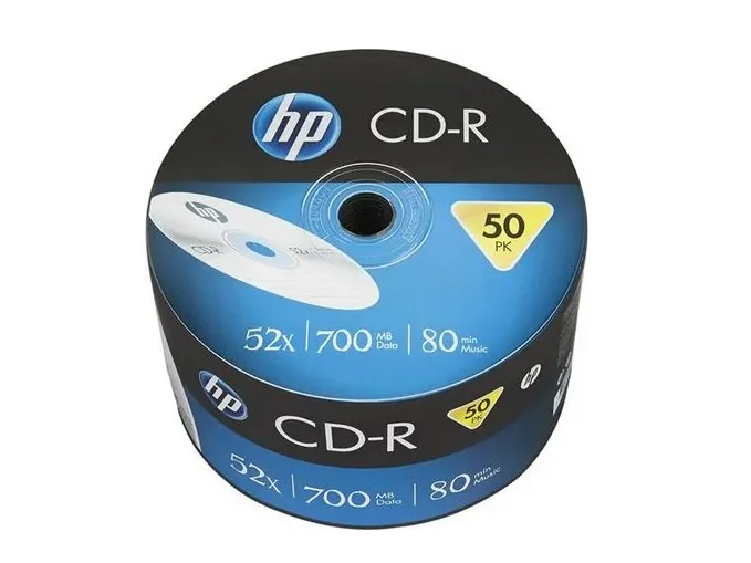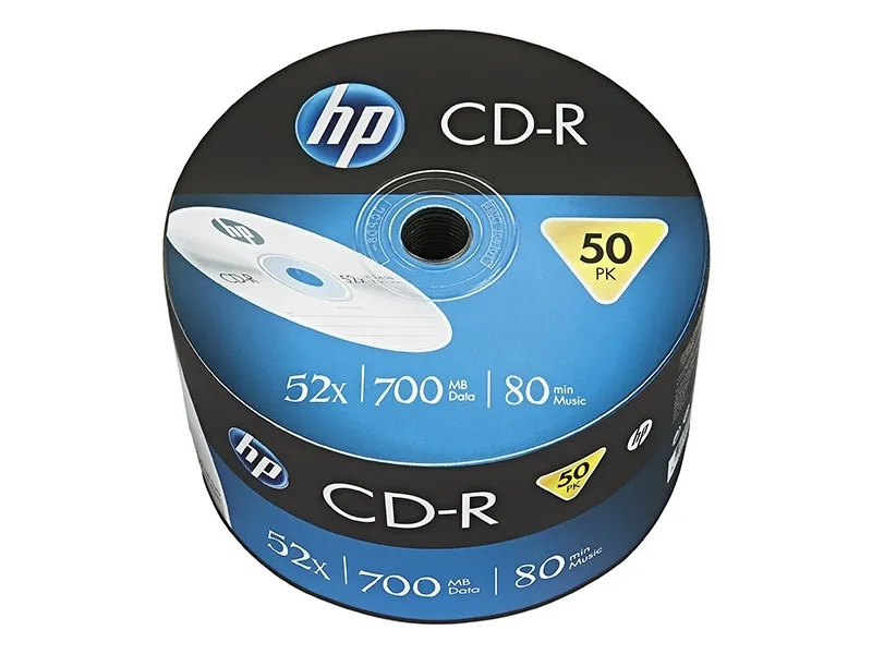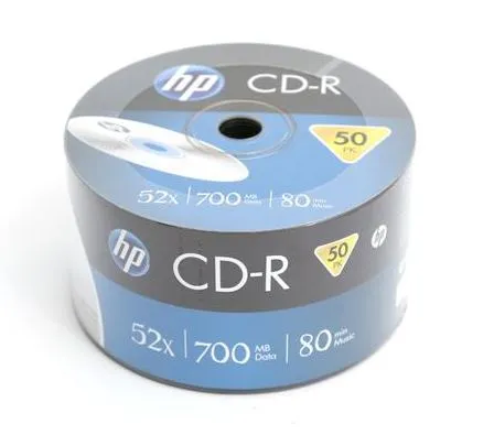 HP CRE00070. Type: CD-R, CD storage capacity: 700 MB, Quantity per pack: 50 pc(s). CD write speed: 52x. Package type: Cakebox