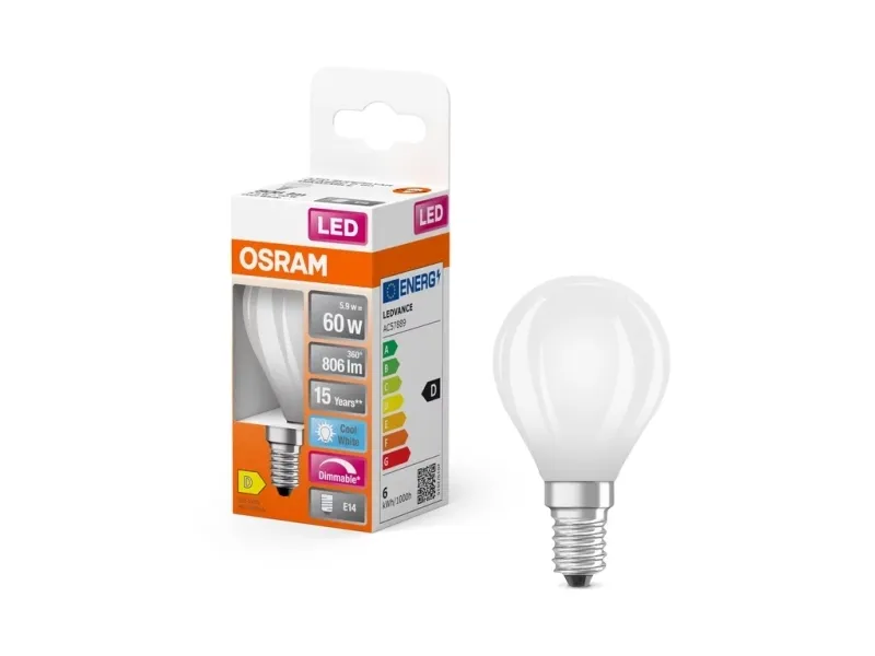OSRAM LED-lampe, sokkel E14, kan dæmpes, Cool White (4000 K), erstatter glødepærer med 60 W, 6,50 W, LED Retrofit CLASSIC P