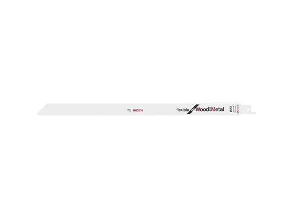 This saber saw blade with vario-pitched teeth is designed for wood with nails/metal, sheet metals, aluminum profiles, glass fiber reinforced plastic/epoxy and provides flexible flush cut.