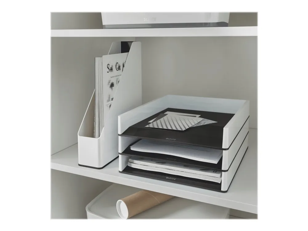 The eye-catching, premium quality Leitz letter tray comes in striking and stylish metallic dual colors with a high gloss finish. This robust tray perfectly complements other products from the Leitz WOW range.