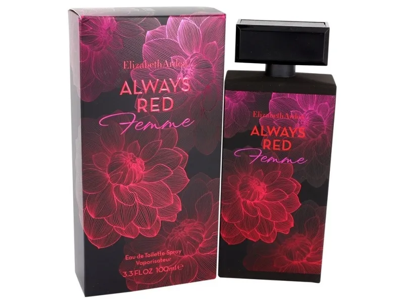 In 2016 Elizabeth Arden launched the adventurous Always Red Femme fragrance A foundation of woodsy base notes of patchouli cedar and moss make an earthy statement while refreshing top notes of lemon and pear revitalize Adjoining the earthy base and lively top notes are the middle fruity and floral notes of peach blossom jasmine and lily that round out the experience