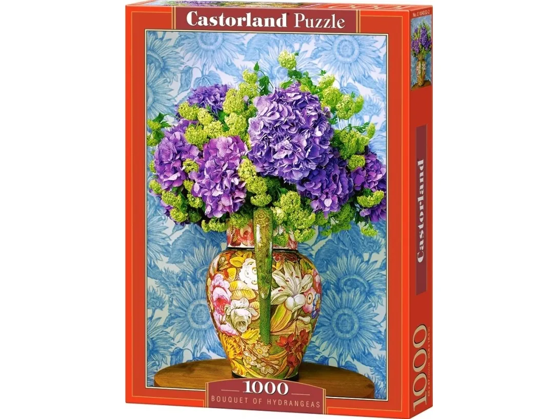 Castorland Bouquet of Hydrangeas 1000 pcs. Number of puzzle pieces: 1000 pc(s). Genre: Flora, Recommended age (min): 9 yr(s). Width: 680 mm, Height: 470 mm