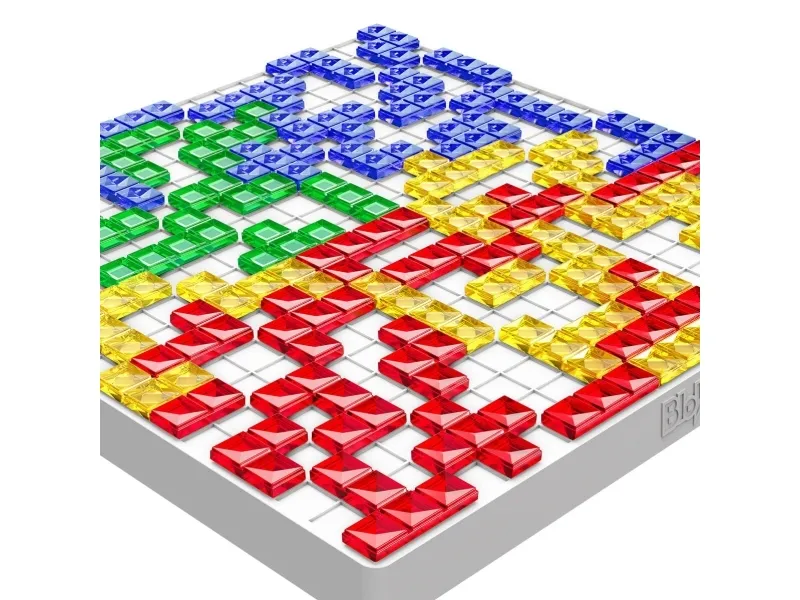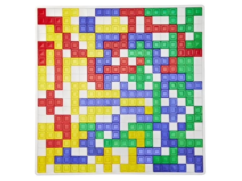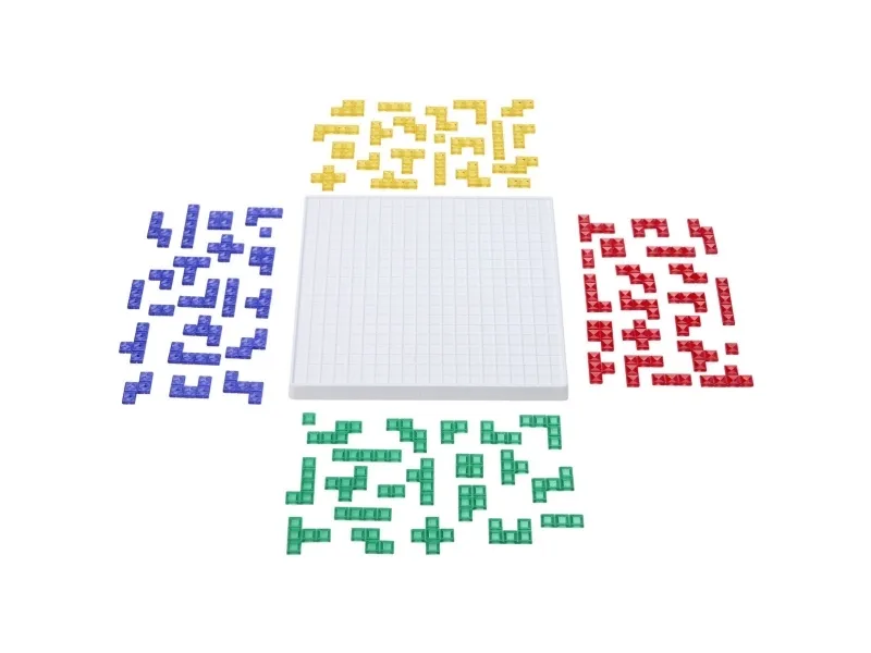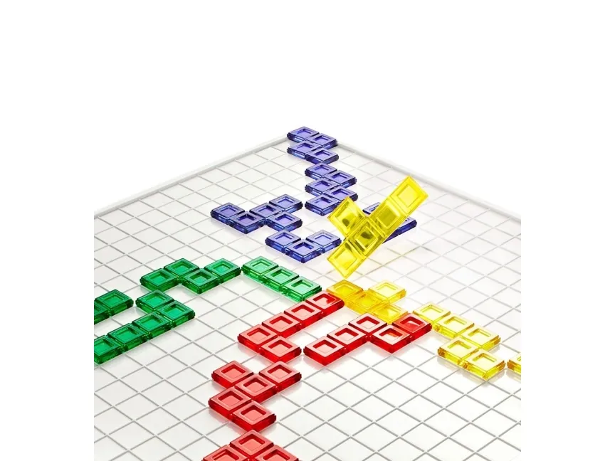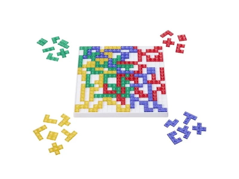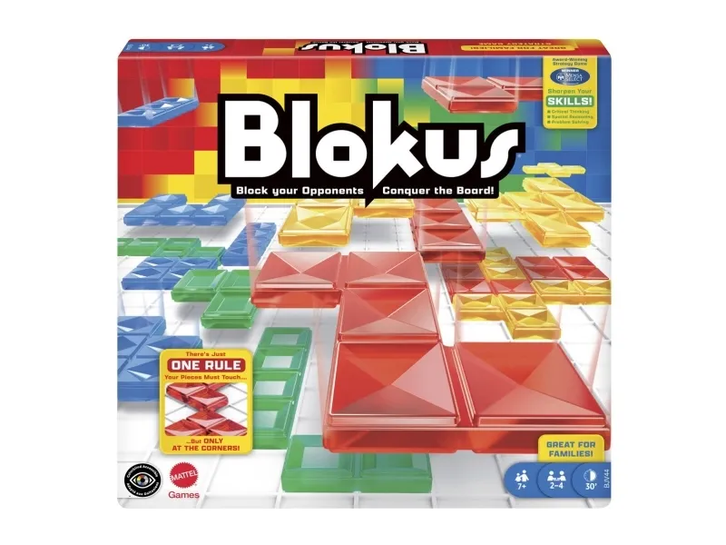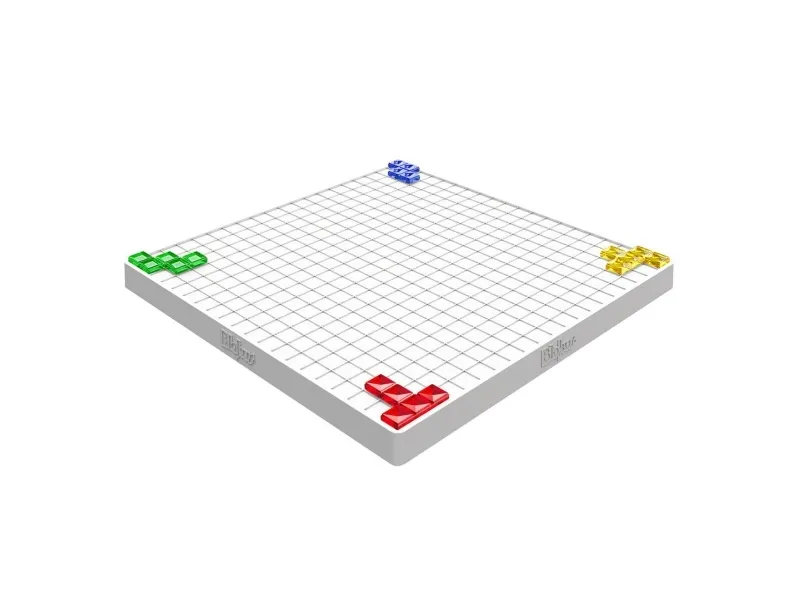 Fun for both kids and adults, Blokus is a strategy board game that challenges spatial thinking. The goal of this game is for players to fit all of their pieces onto the board. When placing a piece it may not lie adjacent to the player's other pieces, but must be placed touching at least one corner of their pieces already on the board. The player who gets rid of all of their tiles first is the winner and strategic thinking helps!