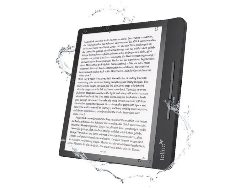 The tolino epos 2 possesses true size, offering even more space for your stories. This eReader can now display even more text on the screen, even at large fonts, meaning that you don't have to turn the page too often. Turn pages using the precision touchscreen or the large page buttons on the side of the tolino epos 2: the choice is yours! The automatic display adjustment offers added flexibility and allows you to instantly switch between portrait and landscape modes. In spite of its size, the tolino epos 2 is a real lightweight, tipping the scales 25 % lighter than the previous model.