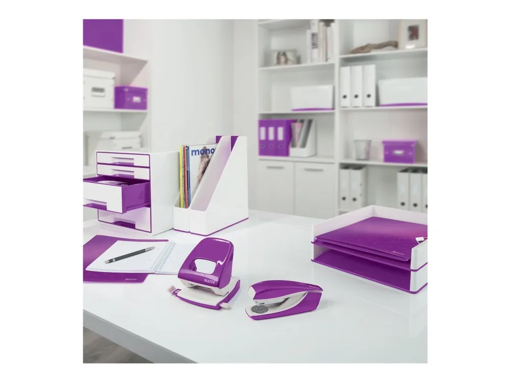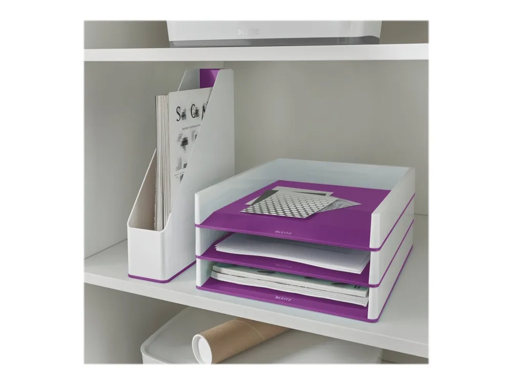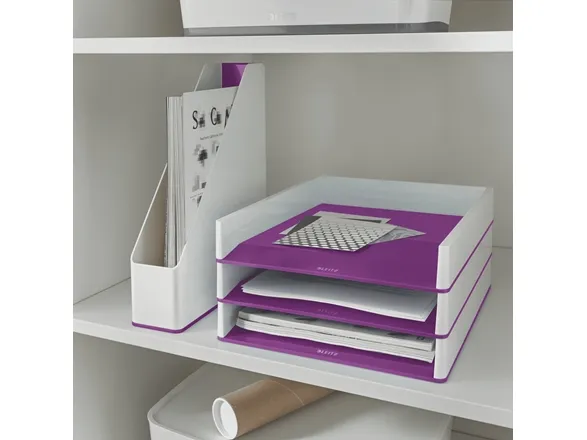 The eye-catching, premium quality Leitz letter tray comes in striking and stylish metallic dual colors with a high gloss finish. This robust tray perfectly complements other products from the Leitz WOW range.