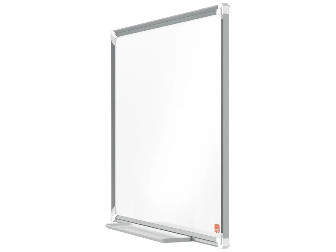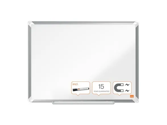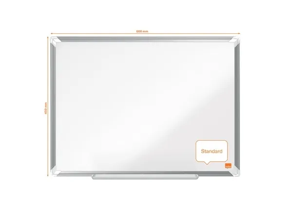 Steel magnetic whiteboard with a modern stylish aluminum trim. Fixed by a through corner wall mounting and includes a large whiteboard pen tray for the convenient storage of whiteboard markers and erasers. The painted steel magnetic whiteboard surface delivers an increase level of erasability for frequent use. Size: 60x45cm.