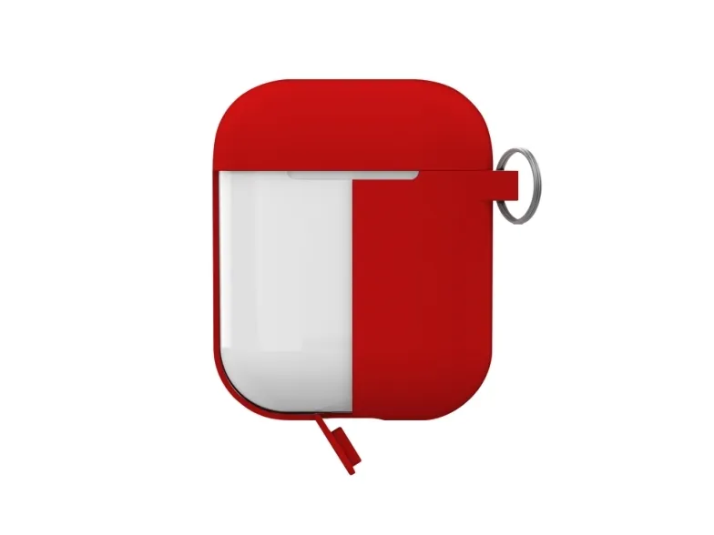 Soft touch silicone case with hook for AirPods is the ideal solution to protect your Apple Bluetooth earphones at best. It is realised in ultra-thin silicone material (only 0.88 mm thickness). Protect your AirPods case with a fashion and functional accessory. Charge output allows your to connect AirPods to charger without removing the case. Soft touch silicone case is available in four different colors matches. Two different colors caps are included in the packaging: dark grey with pink caps, pink with white caps, white with dark grey caps or light blue with white caps.