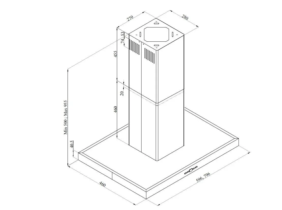 Silverline SL 4117-80 RF BETA ADA Vapaasti seisova liesituuletin - 80 cm - Teräs