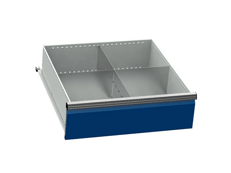 Käytännöllinen laatikoiden jakaja sinkitystä teräksestä, käytettäväksi laatikostoissamme, joiden koko on s x s = 705 x 736 mm / työkalulaatikoissa, joiden sisäkoko on 600 x 600 mm. Jakaja sopii laatikoihin, joiden korkeus on 100/125 mm, ja sitä voidaan säätää niin, että voit järjestää laatikostosi täsmälleen tarpeidesi mukaan.