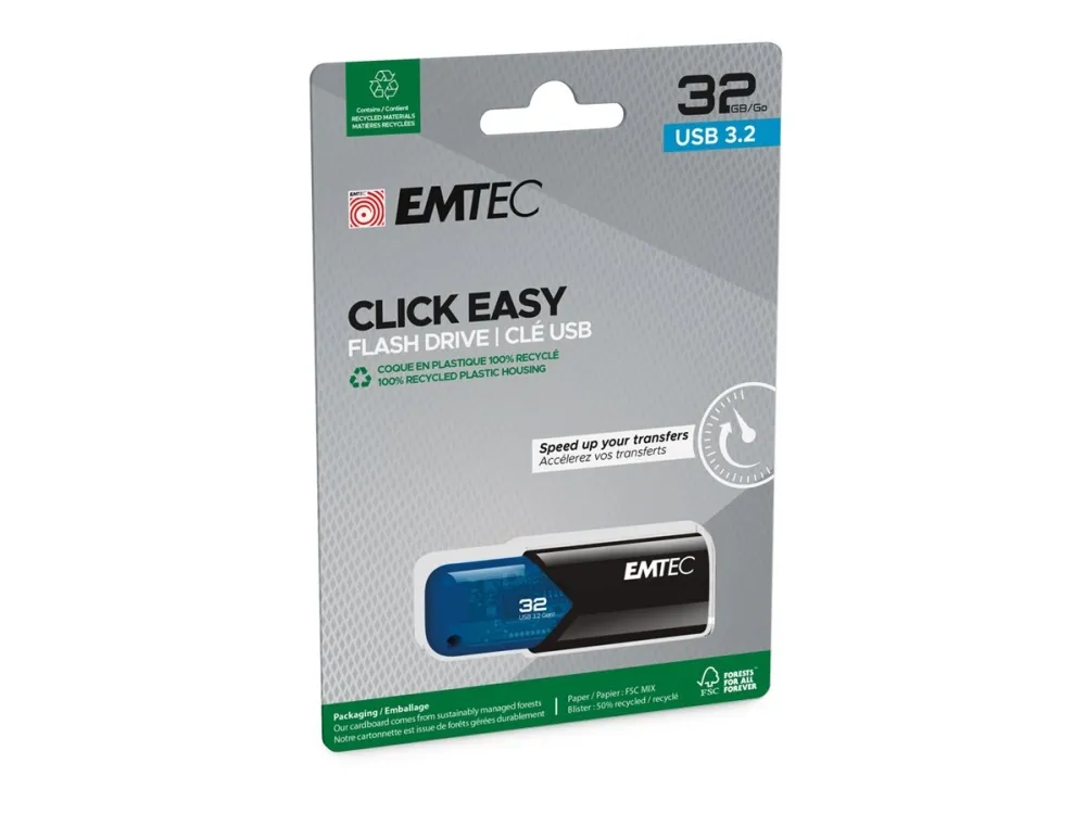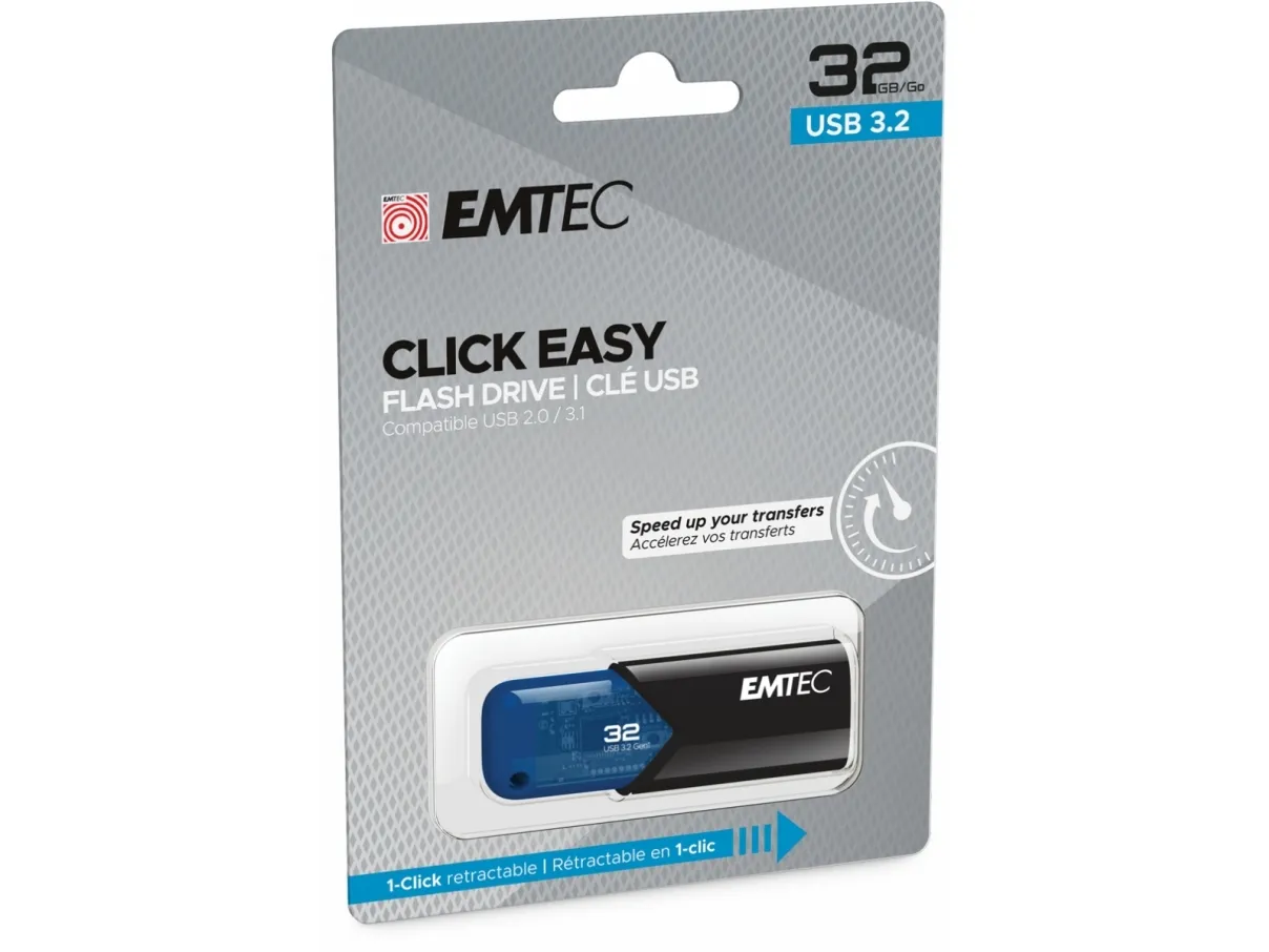 The EMTEC B110 Click Easy 3.2 USB flash drive by DEXXON is a reliable and convenient solution for your storage needs. With a generous 32 GB capacity, it offers ample space for your documents, media, and files, ensuring you have everything you need on the go. The drive's USB 3.2 Gen 1 interface provides fast read and write speeds, making file transfers quick and efficient. Designed with user convenience in mind, it features a retractable connector to protect against damage and a lanyard hole for easy attachment to keychains or bags. Whether for personal use or as a thoughtful gift, the EMTEC B110 Click Easy 3.2 is a practical choice for anyone looking to keep their data secure and accessible.
