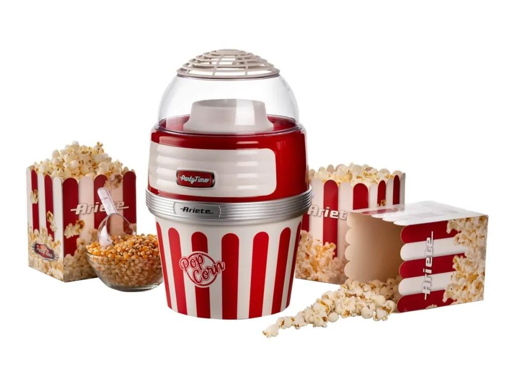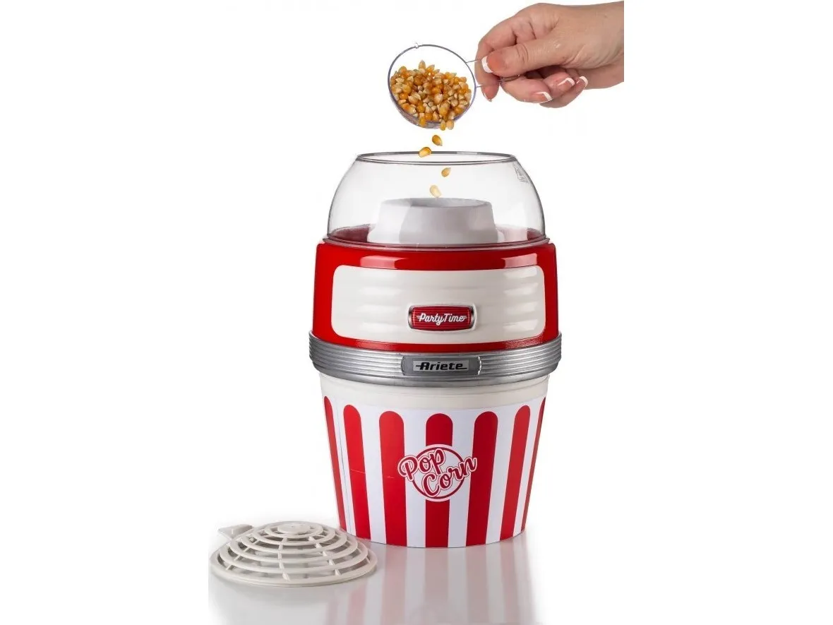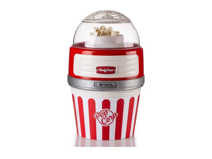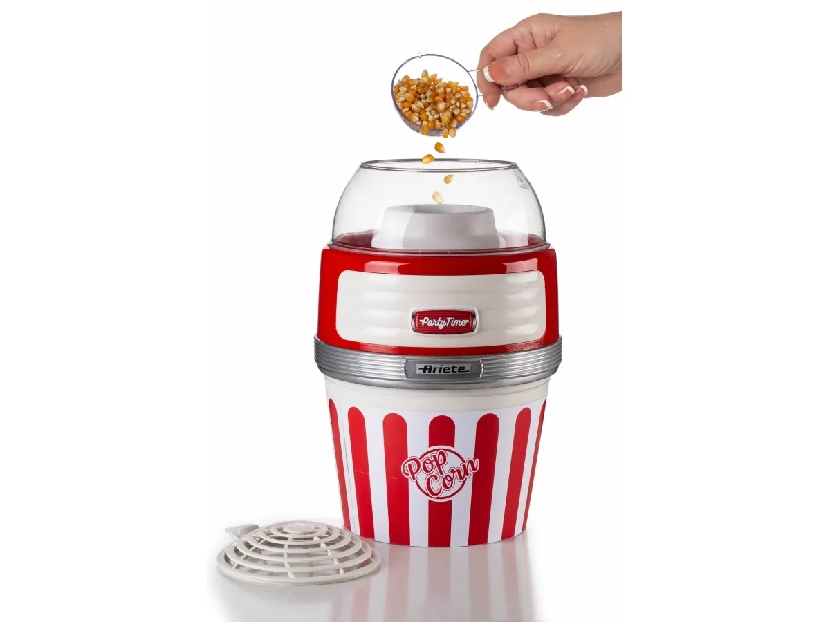 This popcorn maker from Ariete's Party Time line will be at your side on your evenings with family or friends with lots of crunchy, tasty popcorn ready to be munched non-stop. Thanks to the special hot air cooking method, Party Time Pop Corn turns 60g of corn into delicious-smelling, light popcorn in less than 2 minutes. There is no need for you to add anything else like oil or fat to achieve a light but tasty snack, completely natural and fat-free. Thanks to the removable bowl, you can take your hot, crunchy, freshly made popcorn straight to the table or the sofa.