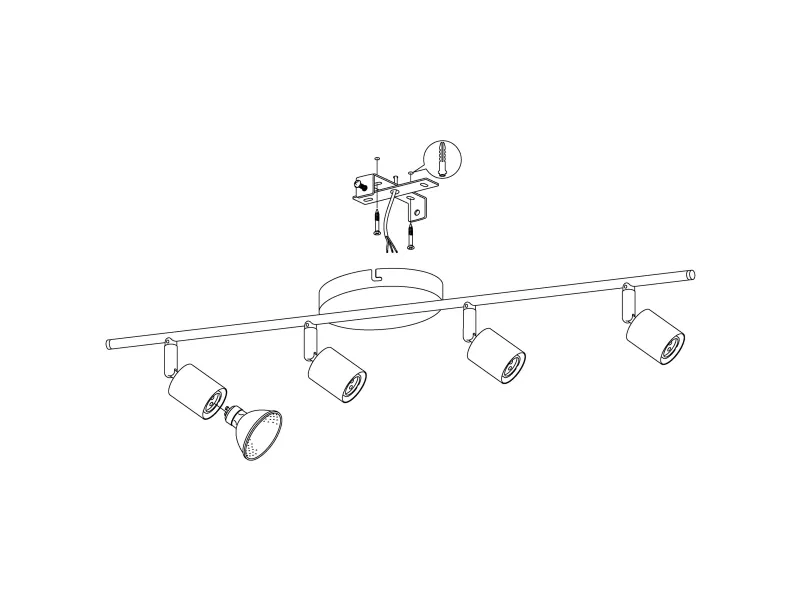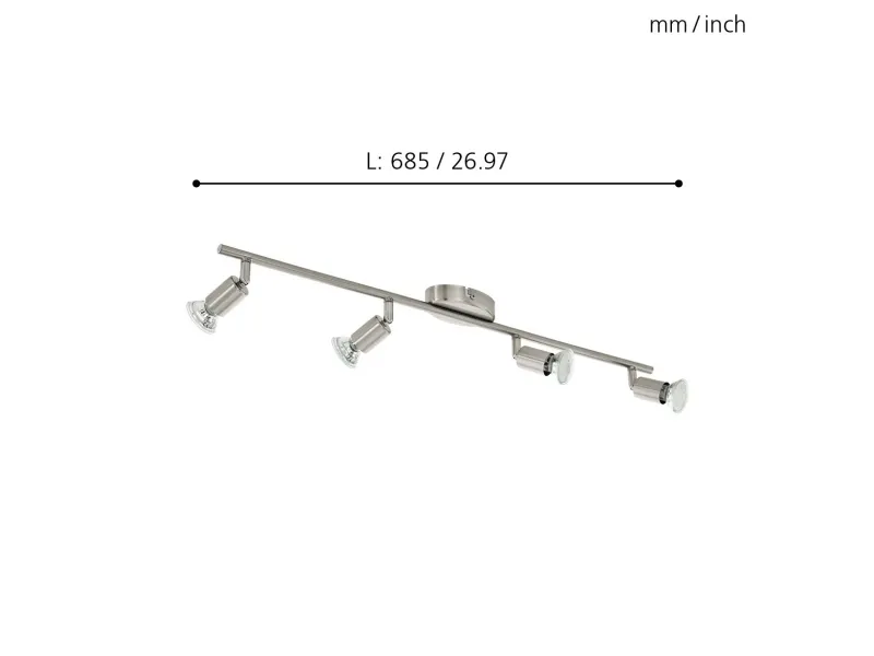 The Eglo Buzz spotlight is designed for indoor use, providing a warm white illumination that enhances any space. With a total of four installed 3 W LED spot light bulbs, equivalent to 23 W in traditional incandescent bulbs, this fixture emits a luminous power of 240 lumens. The 110-degree beam angle ensures broad coverage, while the energy-efficient design, compliant with Energy Class A+, offers savings on energy consumption. Built with steel material and rated at IP20 for protection, this stylish spotlight delivers longevity, boasting a lifetime of 15,000 hours and supporting various light bulb energy classes, making it versatile for different lighting needs. Equipped with a color temperature of 3000 K, it creates a cozy atmosphere suitable for various settings.