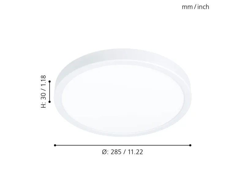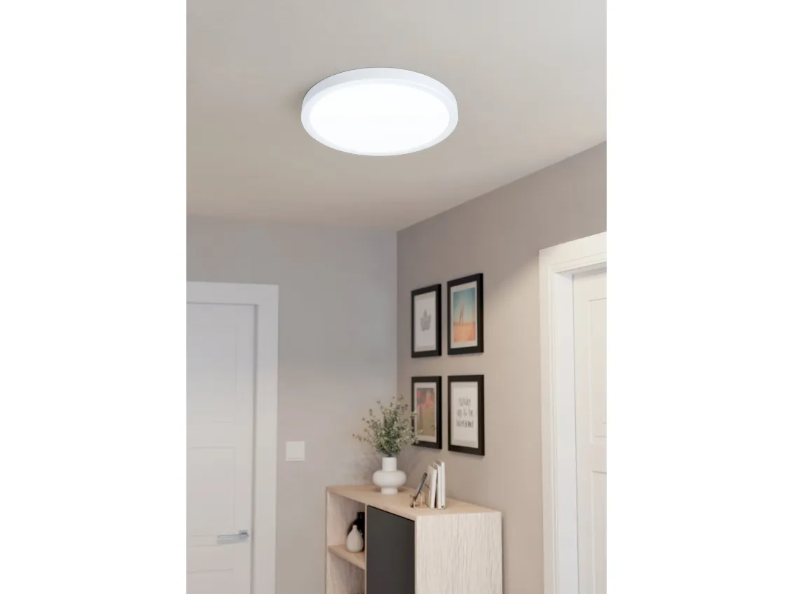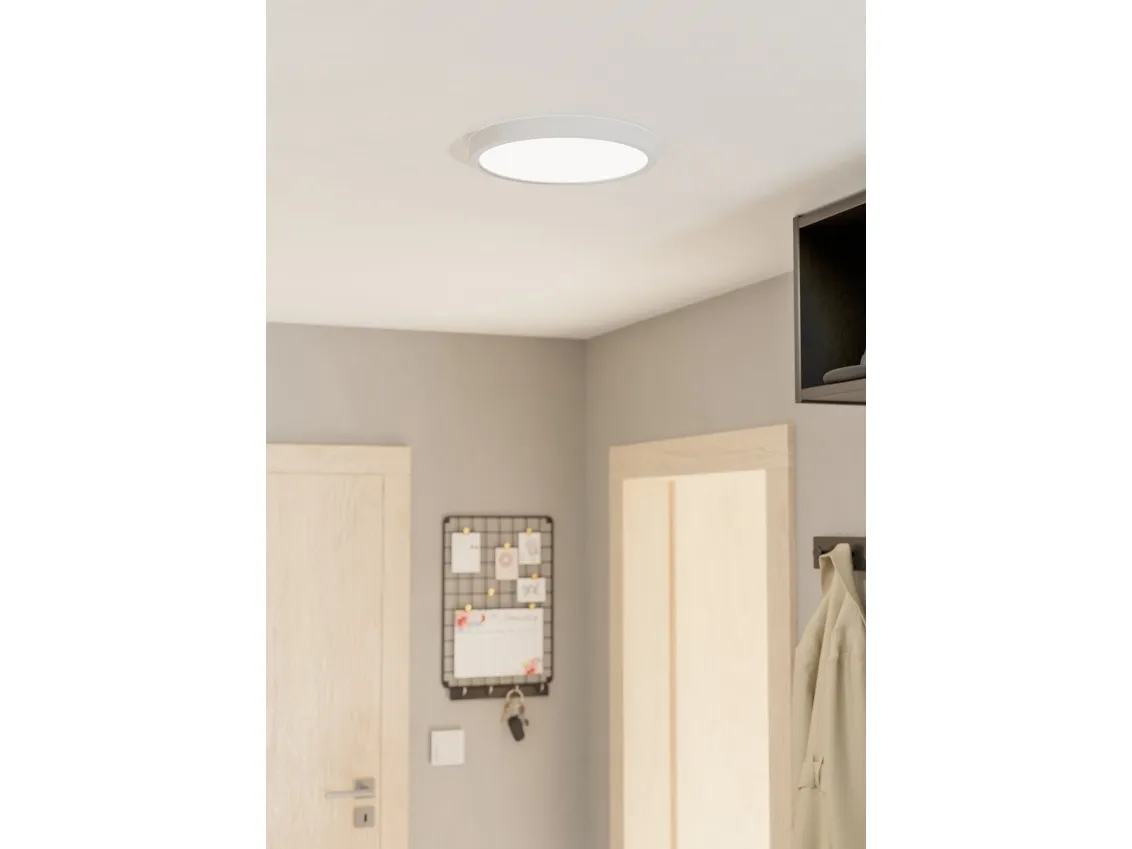 EGLO FUEVA 5 LED-kattovalaisin valkoisessa alussa. Ø:28,5 cm, K:2,8 cm. 20W LED, 2300LM, 3000K. IP20.