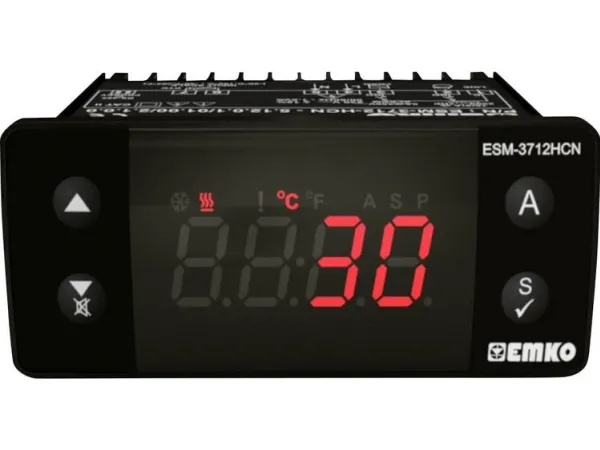 Emko ESM 3712-HCN er en 2-punkts temperaturregulator til indbygning i styretavler. Med indstillelig temperatur-værdi anvendes regulatoren til Varme- eller køleanvendelser. Regulatoren har en alarmfunktion med alarmudgang og intern summer. Med PROKEY stick, der fås seperat, kan programindstillingerne overføres til andre enheder, så parametrene ikke skal indstilles individuelt på hver enhed. Med RS-485-MODULSTIKKET, der fås separat, kan regulatoren udvides med et RS485 modbus RTU interface