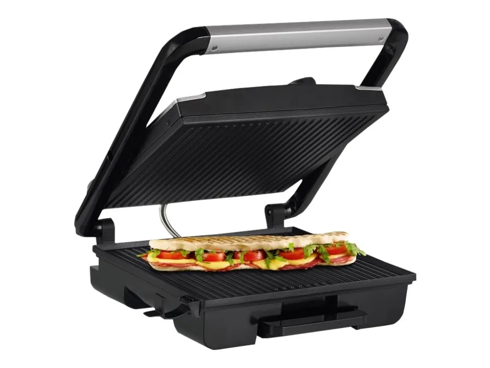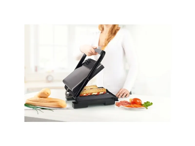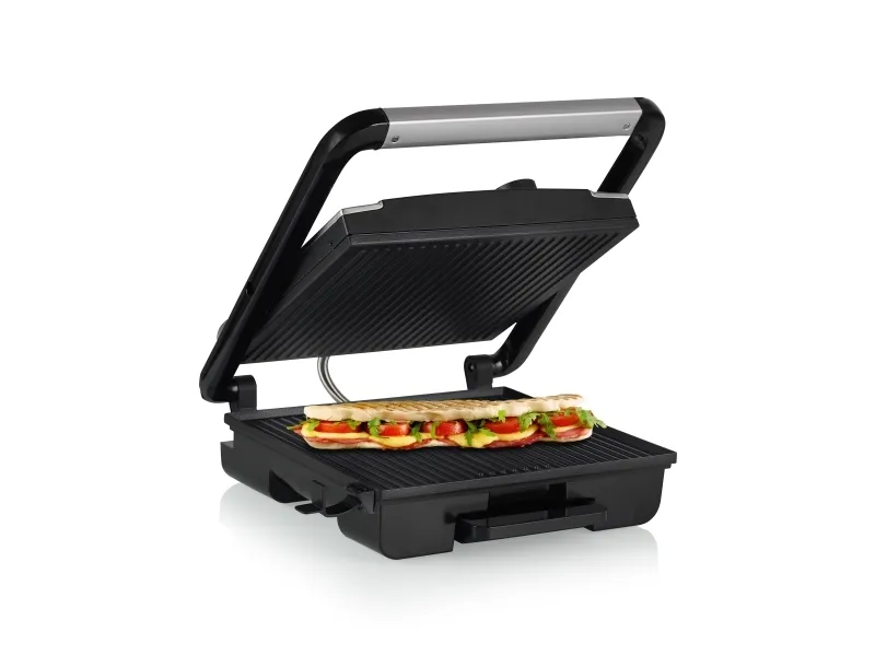 Make the most delicious paninis and sandwiches with this powerful contact grill with an adjustable thermostat. Even extra well-filled buns fit easily between the baking trays without the toppings falling out due to the floating top plate. The smart design makes it possible to store the grill horizontally and vertically. Ideal if you would like to have a large grill, but do not have much storage space.
