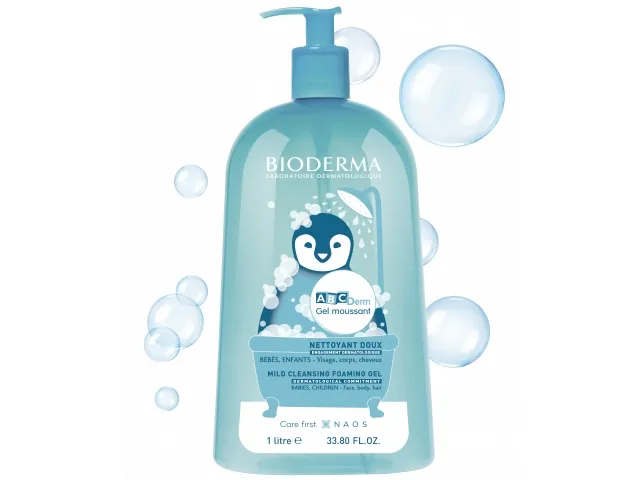 The mild non-stripping cleansing base of ABCDerm Foaming Gel respects the skin and hair balance of all skin, even the most delicate.