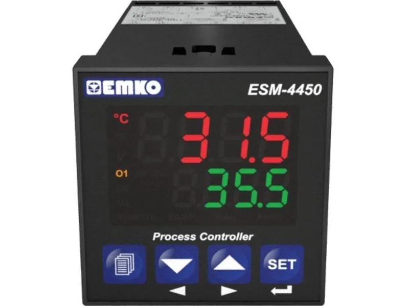 ESM-4450 er en universalregulator til processtyring. Regulatoren kan indstilles til 2-punkts, P, PI, PD eller PID regulering. Derudover har regulatoren en PID-selvoptimeringsfunktion, kan indstilles til auto-Tune (cyklubegrænsning) eller Self-Tune (trin-tilbagemelding). Yderligere funktioner er 8-trin-forløbsstyring ved brug af ekstramodulet EMI-400 digital indgang, blød start og motorventilstyring. I basisvariant er regulatoren udstyret med en universalindgang til temperatursensorer og analogsignal, kommunikationsinterface og en relæudgang. Via to stikpladser kan regulatoren udvides med i/O-moduler. EMI-400 indgangsmodulerne er tilgængelige i udførelserne digital indgang, 0/4-20 mA eller 0-10 V/DC analog indgang, termoelement, 0-5 A til strømtransformer og Pt100. Som udgangsmoduler er EMO-400-modulerne relæudgang, SSR-udgang, transistorudgang og 0/4-20 mA analog udgang tilgængelige.