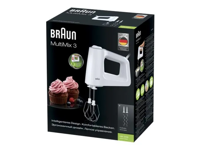When you are looking for a hand mixer, you want a device that will make mixing not only quicker and more effective, but one that is also easier to handle and offers a more diverse range of use options. The MultiMix 3 from Braun with a unique ergonomic design is the answer: the perfect match for perfect results! All of these powerful, compact hand mixers feature a unique ergonomic design that guarantees a perfect match for all attachments to ensure ultimate convenience and a maximum of effort when mixing for any baking need - delivering perfect results that bring out your own baking style.