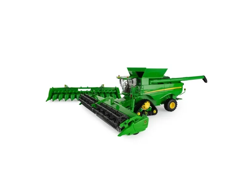 Prestige Collection John Deere S780 Tracked Combine -leikkuupuimurissa, jossa on telaketjut, on maissin taittuva leikkuupöytä 712 FC ja kuivurin leikkuupöytä 640FD. Tässä keräilyesineessä on paljon yksityiskohtia, jotka vastaavat todellista leikkuupuimuria. Ominaisuuksiin kuuluvat: valettu runko, kirkkaat ohjaamon ikkunat, joista näkyy yksityiskohtainen sisätila, kääntyvät telaketjut edessä ja kääntyvät telaketjut takana, liikuteltava leikkuupöytä, tikkaat ja aukeavat runkopaneelit.