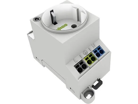 WAGO Service stik tilaan DIN-kuoressa, tyyppi F (Schuko), LED-tilaindikaattorilla ja Push in klemmer, mulighed for videresløjfning