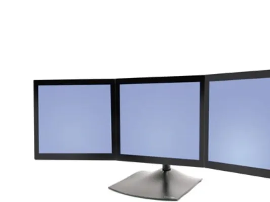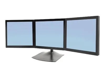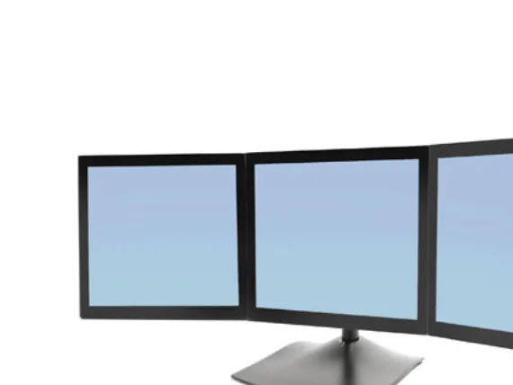 DS100 Triple-Monitor Desk Stand conserves desk space by suspending three flat panels on a single base. Easily view multiple screens at once to increase productivity.