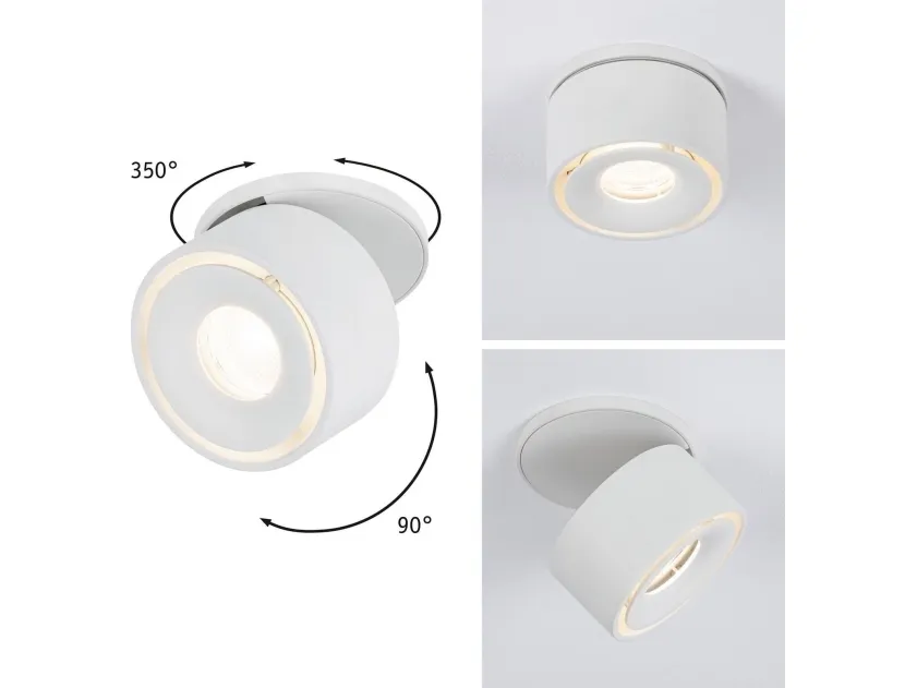 The Spircle recessed LED luminaire in Matt white opens up a wide range of applications and blends seamlessly into any living situation with its modern industrial look. With a beam angle of 38°, it provides targeted illumination of areas and objects. The head can be swivelled up to 90° and rotated 360°, offering full flexibility and ensuring that your favourite items are always shown in the right light. The spots require a standard bore diameter of 68mm.
