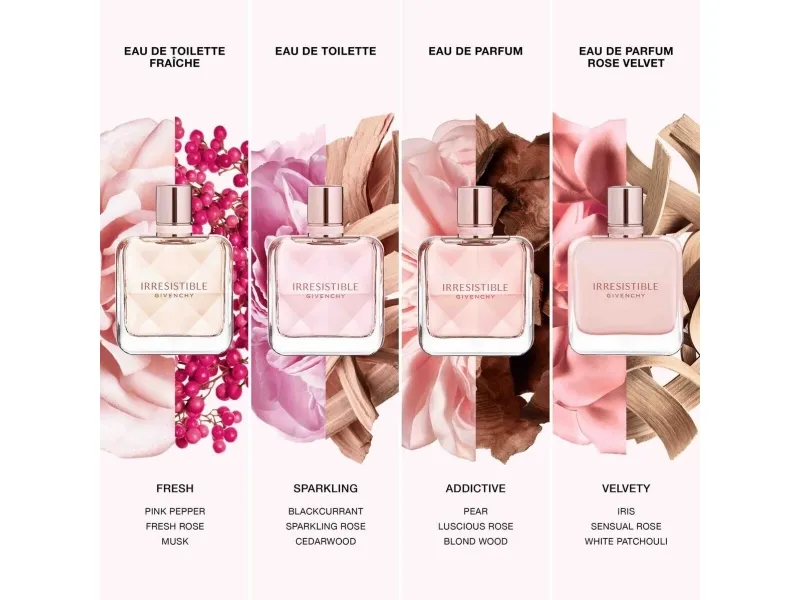 Irresistible Givenchy, a fragrance that definitely invites you to let go. A floral-woody and fruity fragrance that plays with the contrast between two opposite accords of luscious Rose and radiant Blond Wood. This effervescent Rose reflects the fragrance of a naturally irresistible woman with strong magnetic charm, so electrifying that we only want to follow her. She is radiant and draws you into a release dance with liberating vibes. An invitation to let go and reveal who you are. For her, life is a dance.