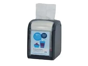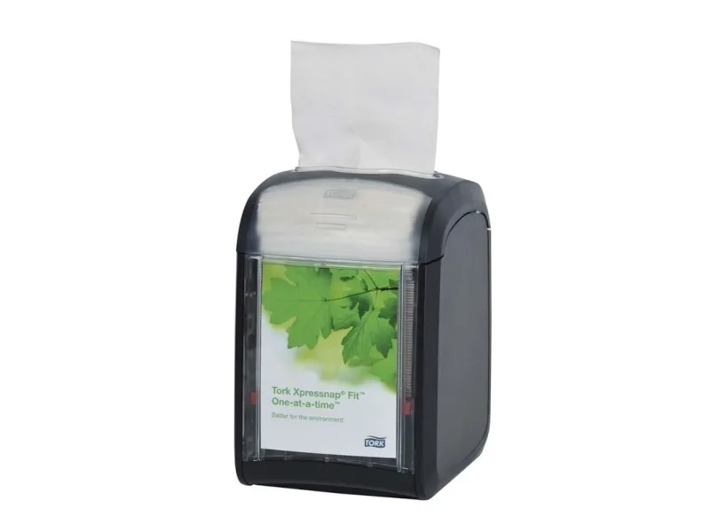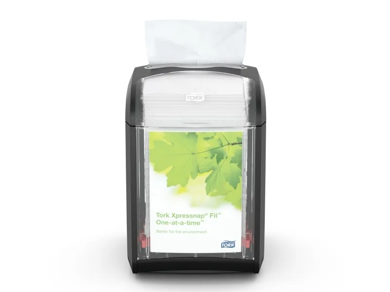 Johda yritystäsi tehokkaammin. Tork Xpressnap Fit -annostelijat ovat ihanteellisia pienille ketjuille ja itsenäisille ravintoloille, jotka tarjoavat lautasliinoja pöydissä tai tiskeillä. Tähän mennessä pienikokoisimmassa Xpressnap-järjestelmässämme on yksi kerrallaan tapahtuva annostelu, joka säästää vastaavasti jätettä ja lautasliinan määrää. Sen lisäksi, että Tork Xpressnap Fit palvelee enemmän vieraita uudelleentäytön välillä - verrattuna Fast Fold- ja Counter Fold -järjestelmiin - se myös vähentää varastotilan tarvetta ja käyttämättömien, poisheitettyjen lautasliinojen määrää yli puoleen.- Lautasliina on taitettu niin, että se vie vähemmän tilaa, mutta se voidaan avata täysikokoiseksi lautasliinaksi.- AD-A-Glance-mainospaneeli erikoistarjouksia ja muuta asiakasviestintää varten.- Kestävä annostelulaite, joka on helppo puhdistaa, säästää aikaa huollossa ja suojaa lautasliinoja lialta ja roiskeilta.- Tasoilmaisin näyttää, milloin se tarvitsee uudelleentäytön, joten lautasliinat ovat aina saatavilla. Nyt ei ole enää vaaraa, että tuotteet loppuvat kesken päivän kiireisimpinä aikoina.