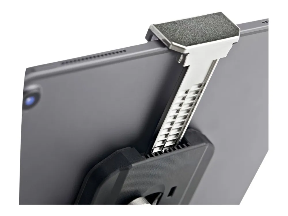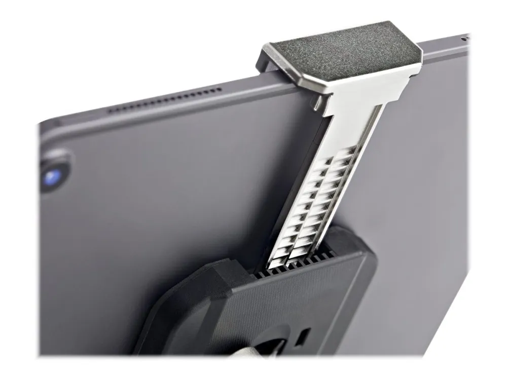 This universal tablet holder enables you to mount and use your tablet as a second display, or as a point of sales terminal while having access to all ports/buttons/cameras. Works with tablets between 7.9" and 13", and it supports tablets up to 0.3" thick and up to 1.5lb / 0.7kg in weight. Its extendable and locking gripping arms holds the tablet in place to avoid it slipping from the stand while you are interacting or typing on it.